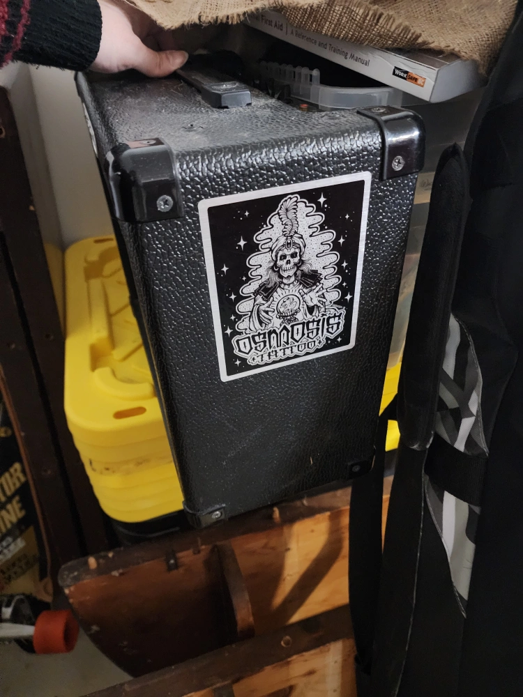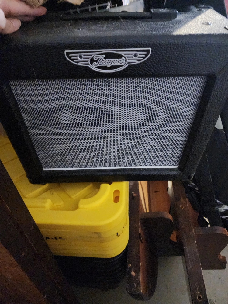 Small guitar amplifier. Black, good condition. Includes power cable. 8 inch speaker.