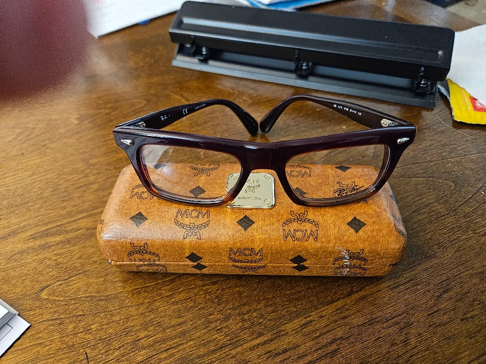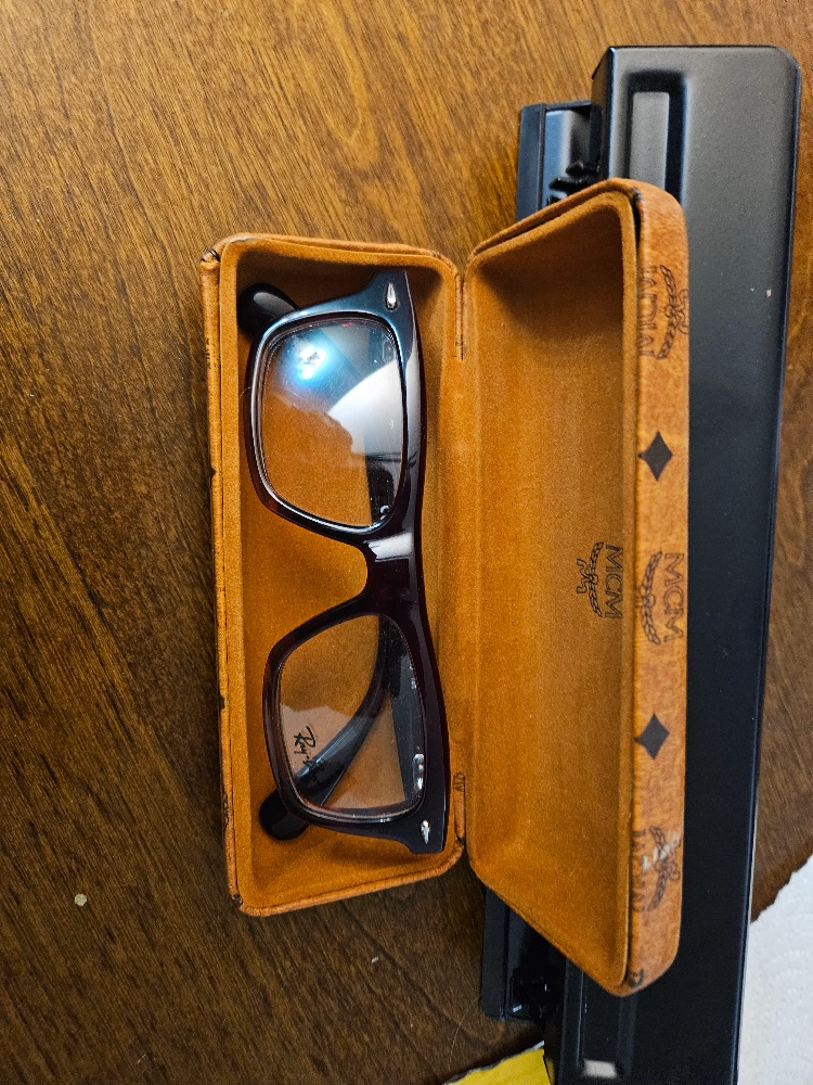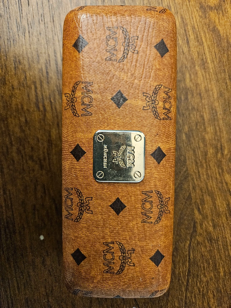 Brown rectangle eyeglasses frame. Comes with MCM hard case. New, non prescription, ready for prescription glasses.