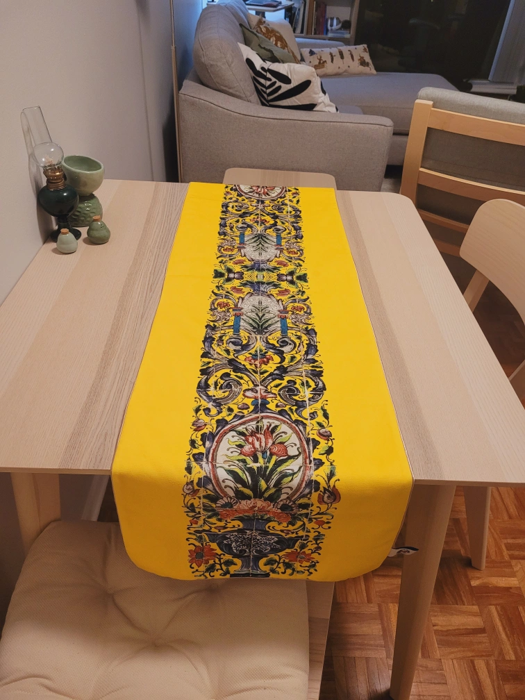Velvet Table Runner with Floral Design