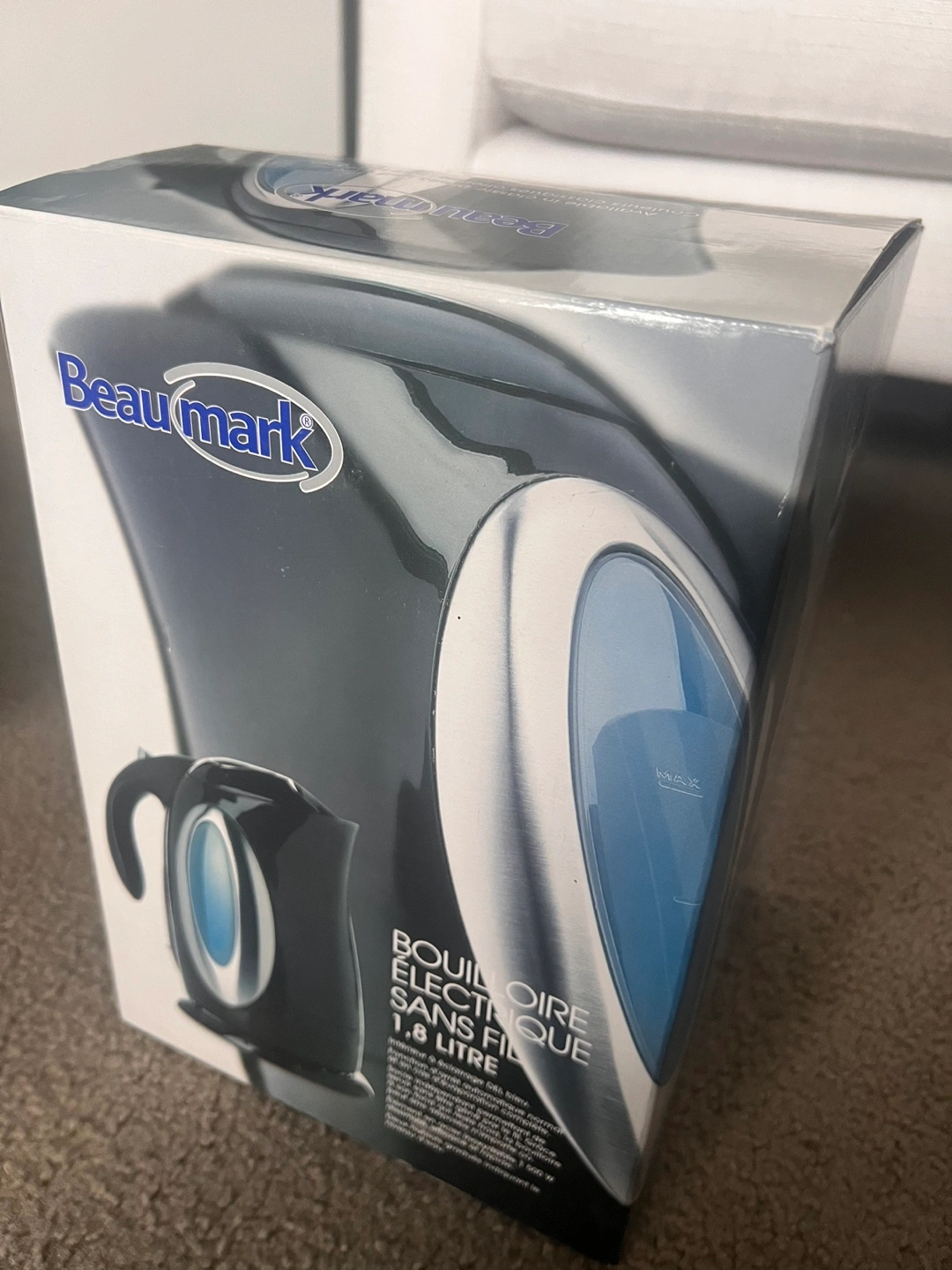 Never taken out of box, brand new Beaumark kettle in black. Was given as a wedding present but we already have a kettle.