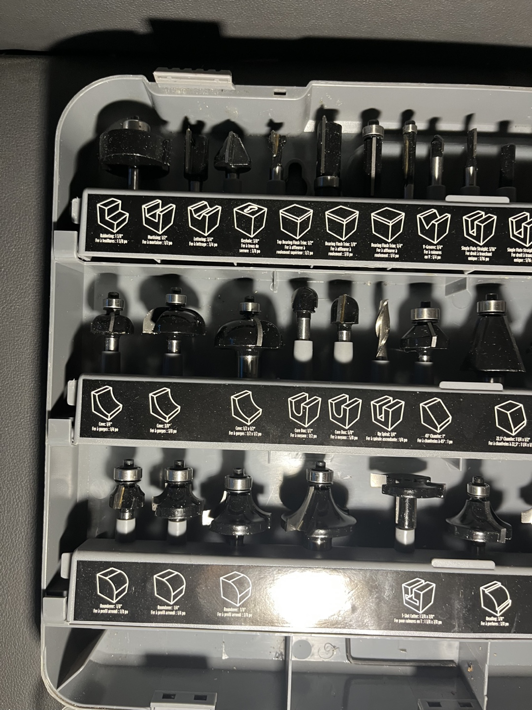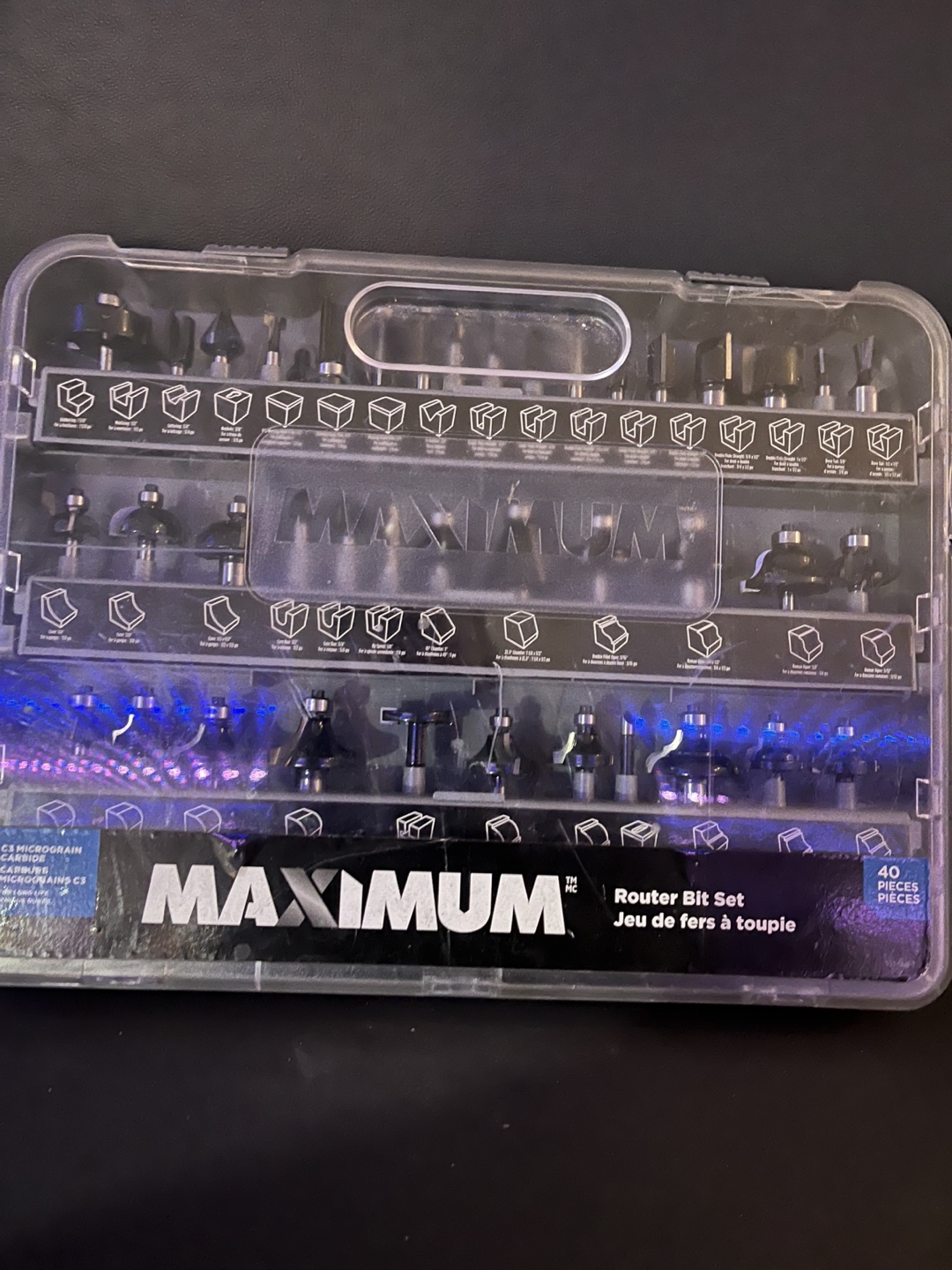 1 / 71 / 7Buy & Sell40-Piece Maximum Router Bit Set40-Piece Maximum Router Bit Set$50New router bit set. Forty pieces in a plastic carrying case. Various sizes and shapes.WHERE TO MEETEtobicokeView MapSELLERverifiedAbrahamMimico41838 reviews0 chats·0 favorites·15 viewsSEND CHAT TO SELLERHi Abraham! I’m interested in your listing.Hi Abraham! I’m interested in your listing.Get the Karrot app to chatSign In to chat