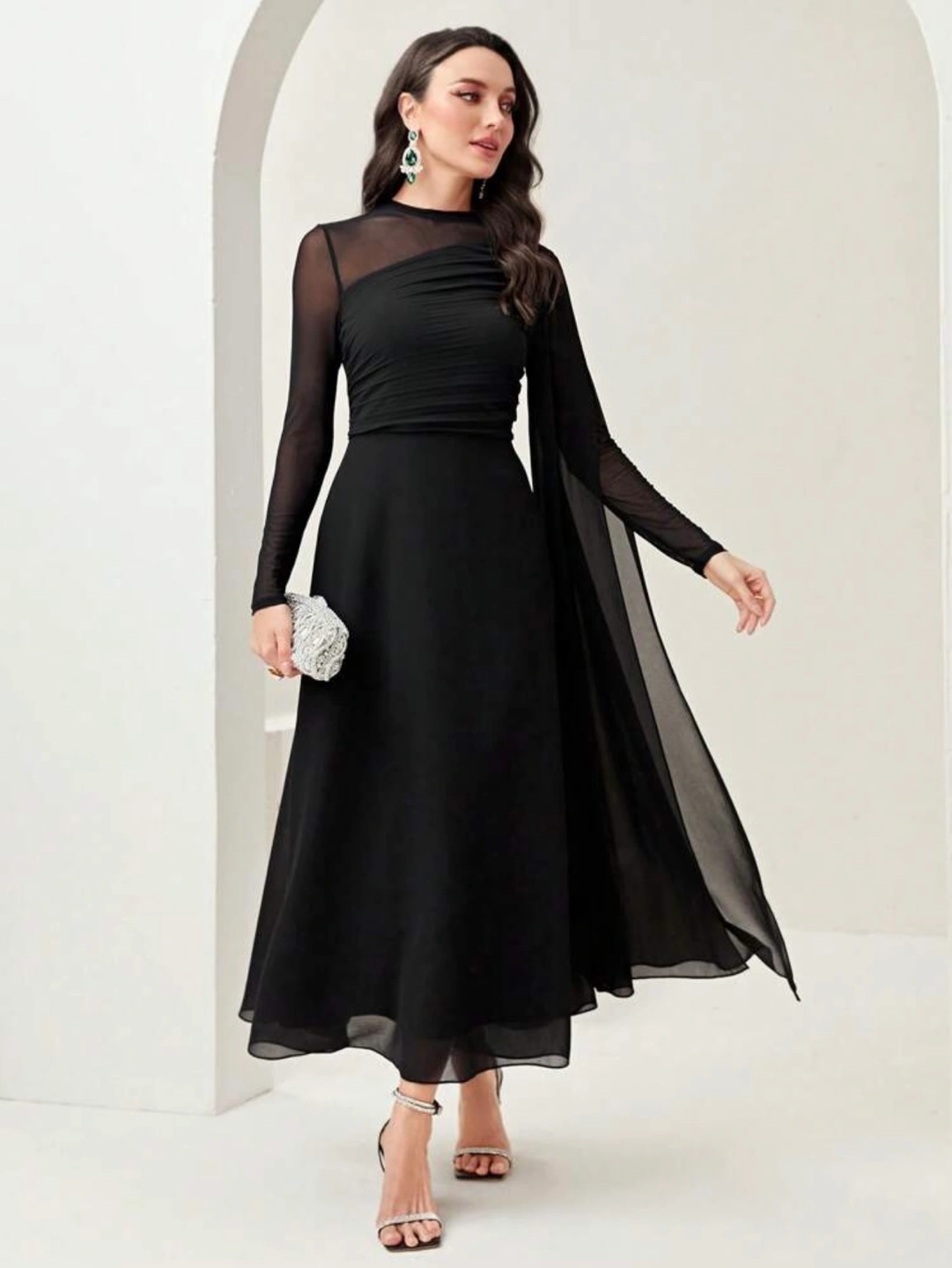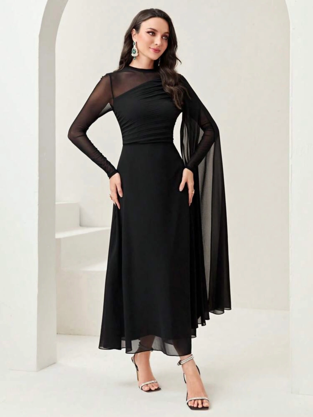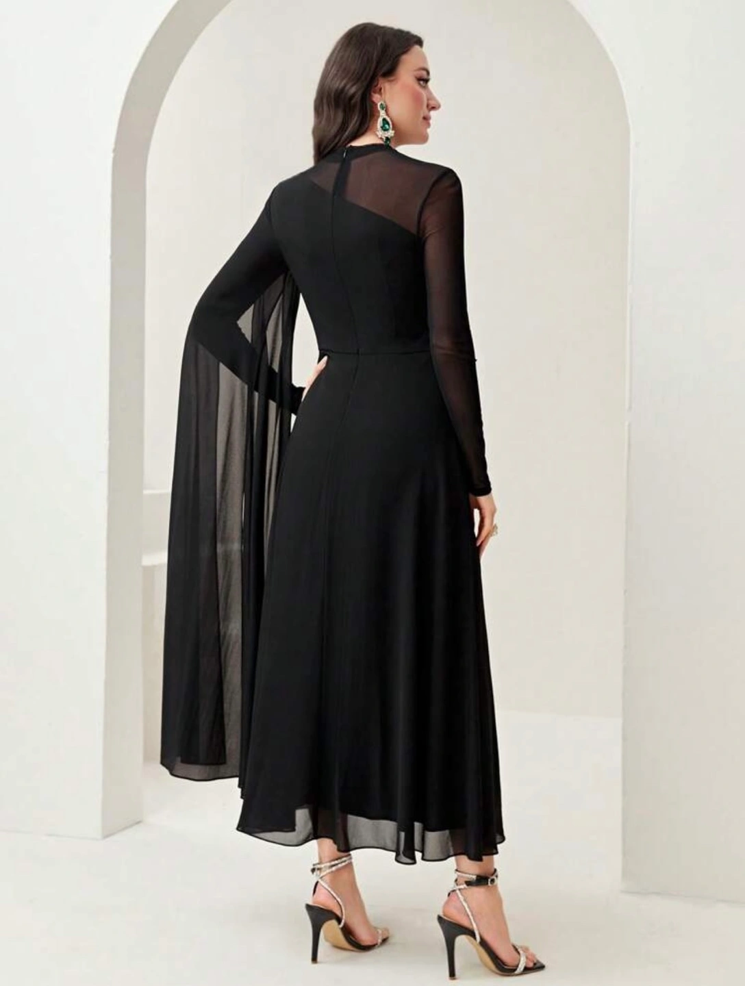 Black Dress with Sheer Sleeves