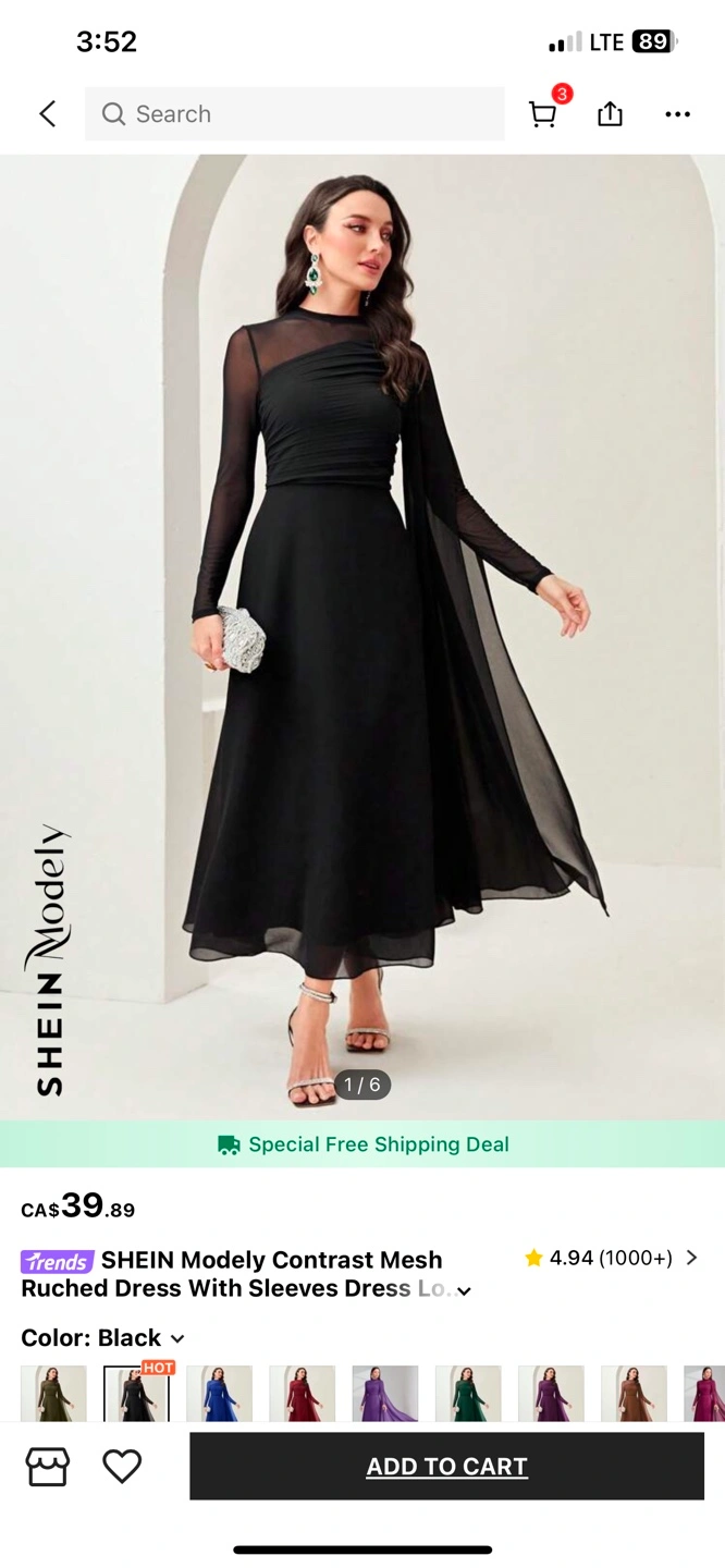 Brand new black midi dress. Has sheer long sleeves. Size women’s large, but fits as a medium as well.