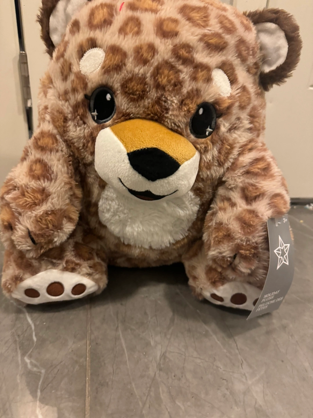 177Soft plush toy. Leopard print design. Cute, cuddly features. Perfect for kids or collectors.