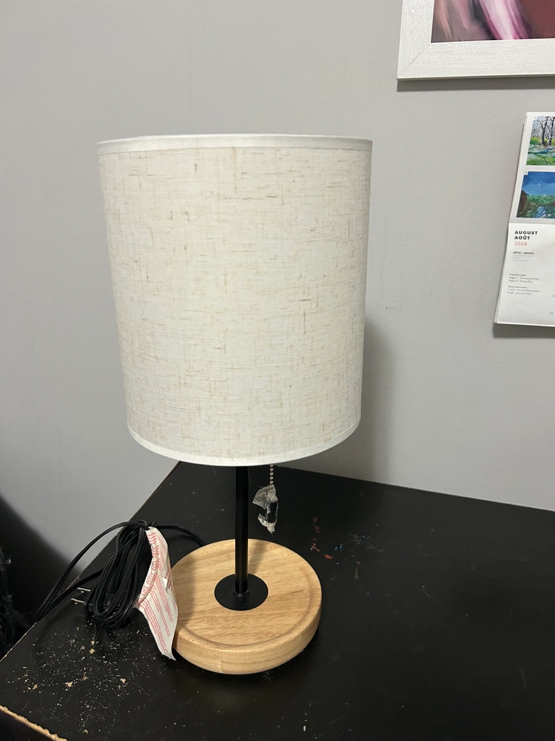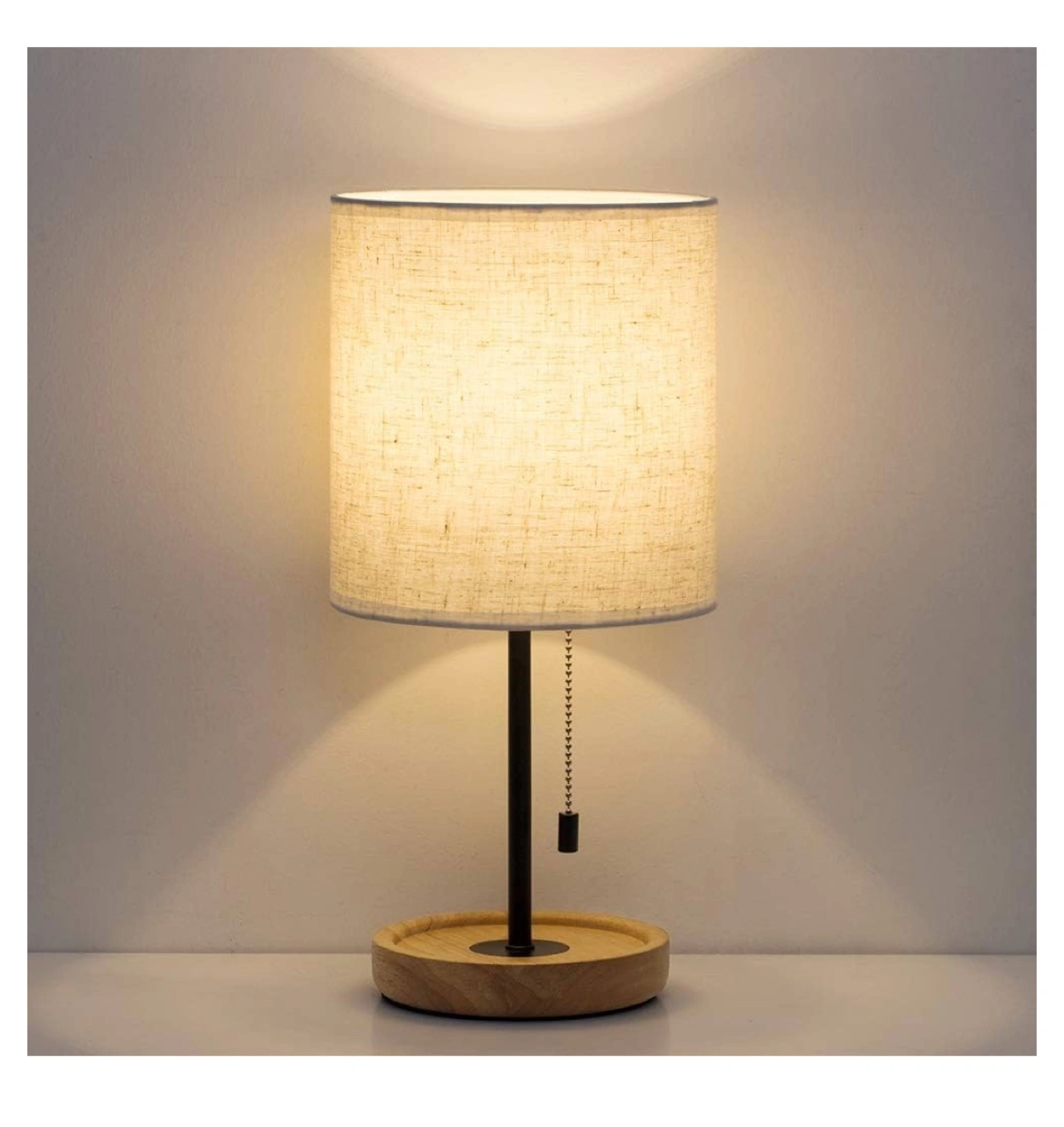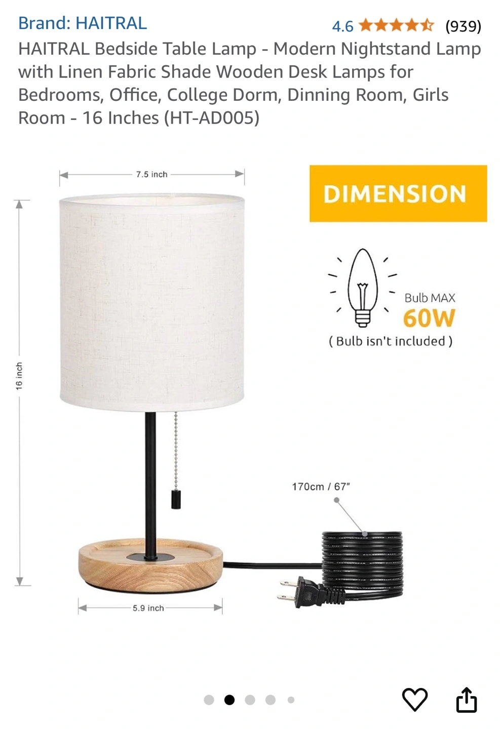 Cute bedside table lamp and very sturdy also because of the wooden base.