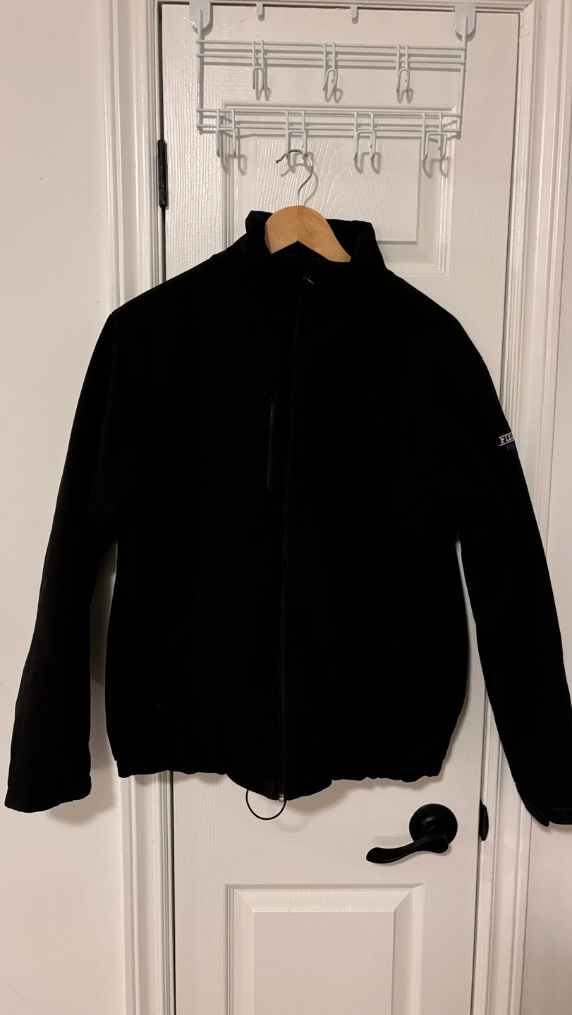 Men's black soft shell jacket. Water repellent and breathable. Multiple layers for protection, keeps you warm in winter and late autumn