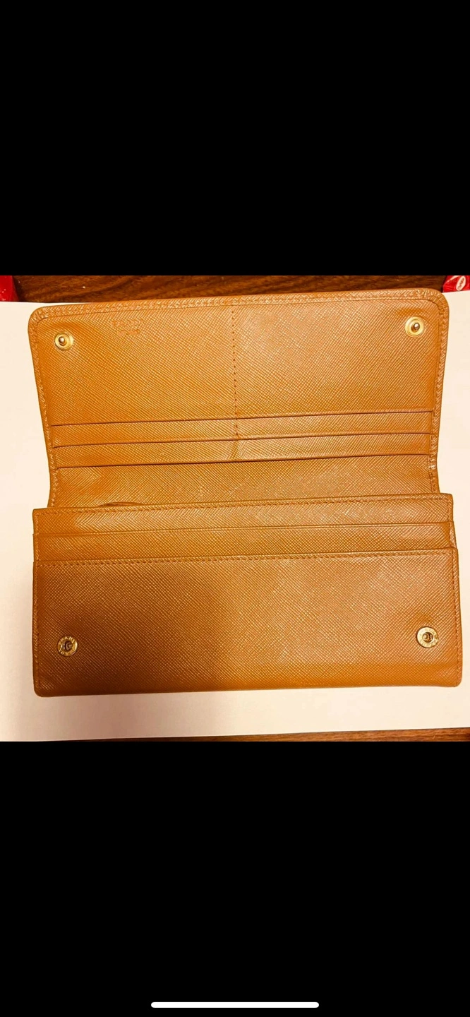 Real authentic Prada wallet. Has a few scuff marks but its still in good shape. I believe it gives its a bit of character