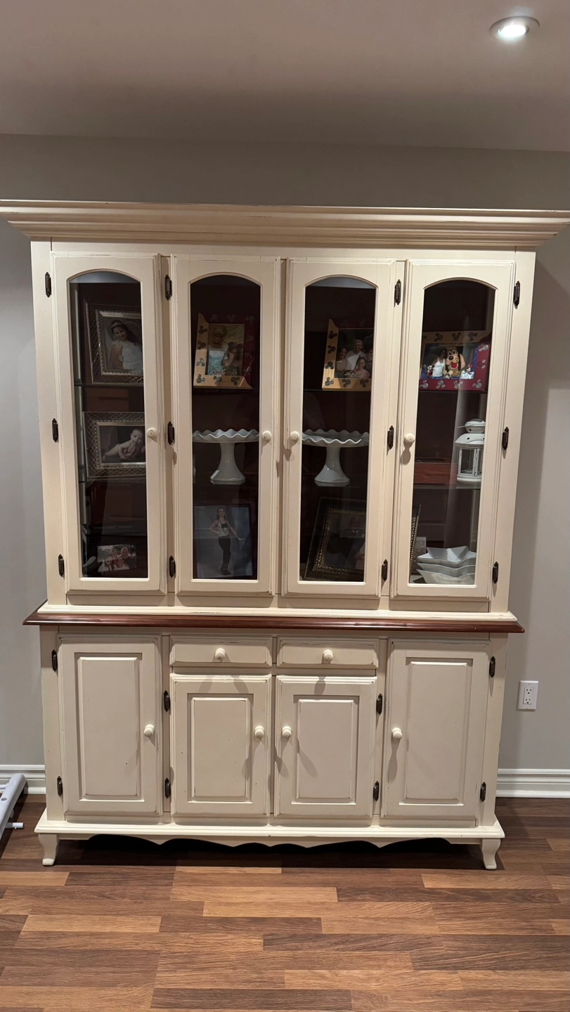 Large Antique Cream China Cabinet