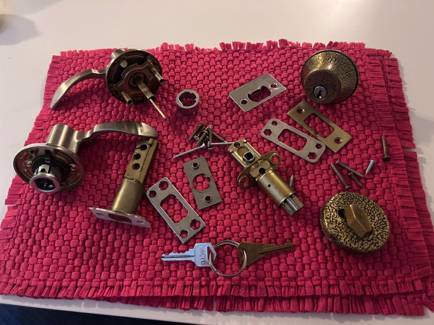 Disassembled Door Hardware Set with Keys