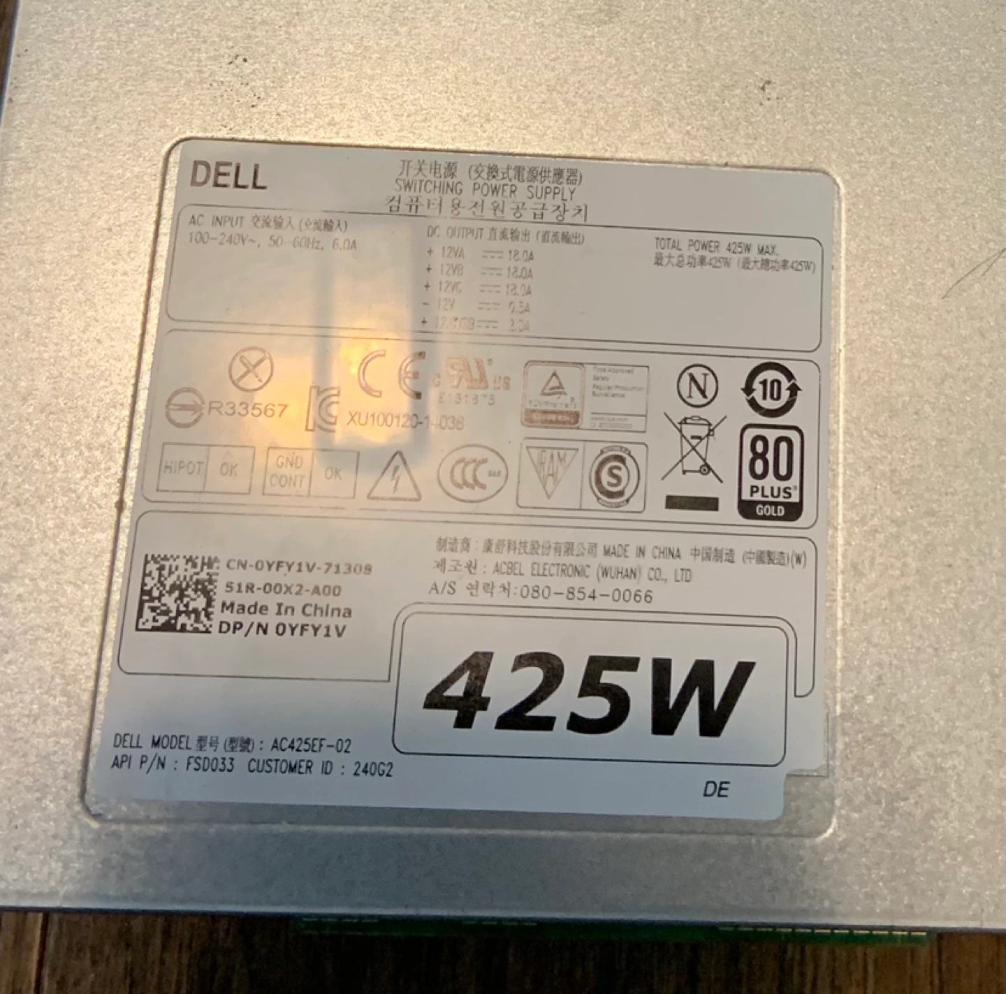 Dell Precision T3610 T5610 T5810 T7810 T7910 Power Supply YFY1V 0YFY1V AC425EF