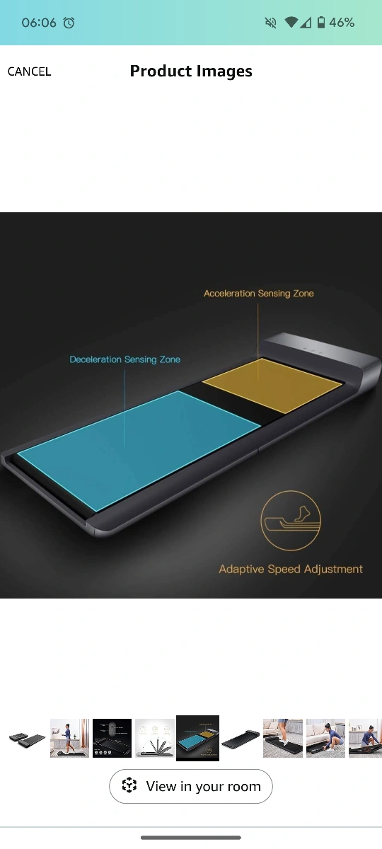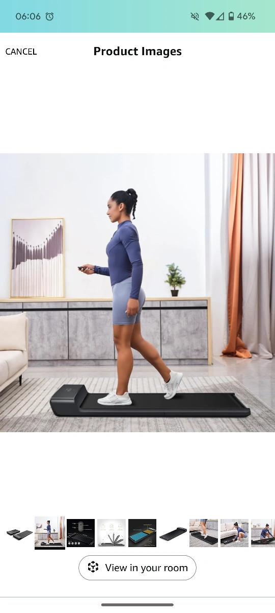Under-desk walking treadmill. Can be easily folded in half for storage and has a roller at the front for easy movement! Comes with remote control and can be controlled with app.