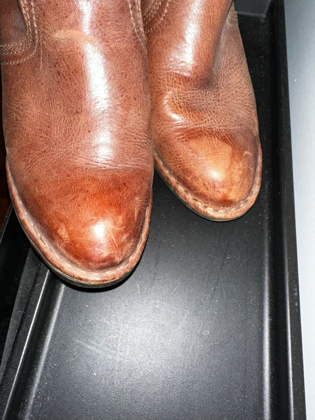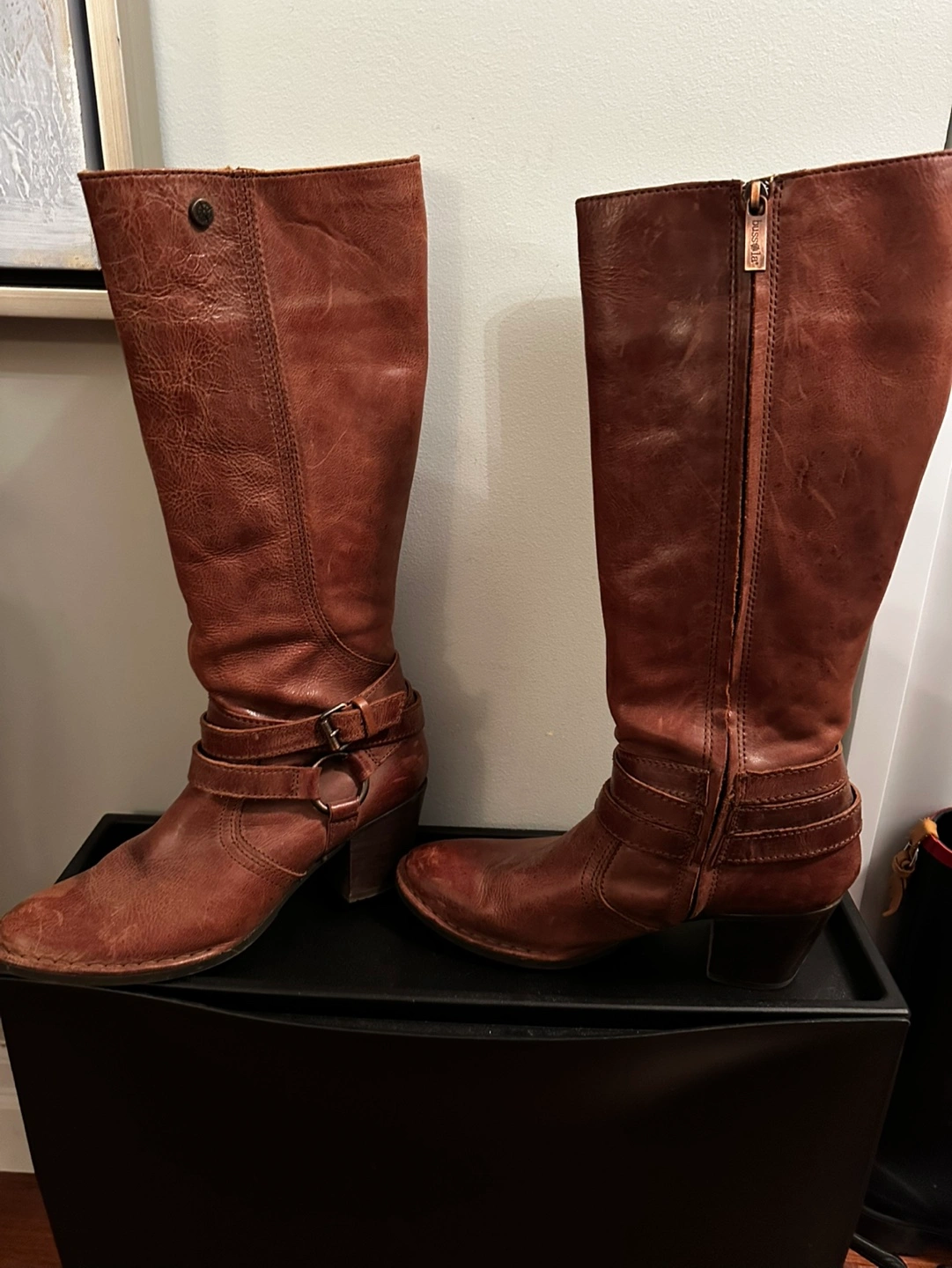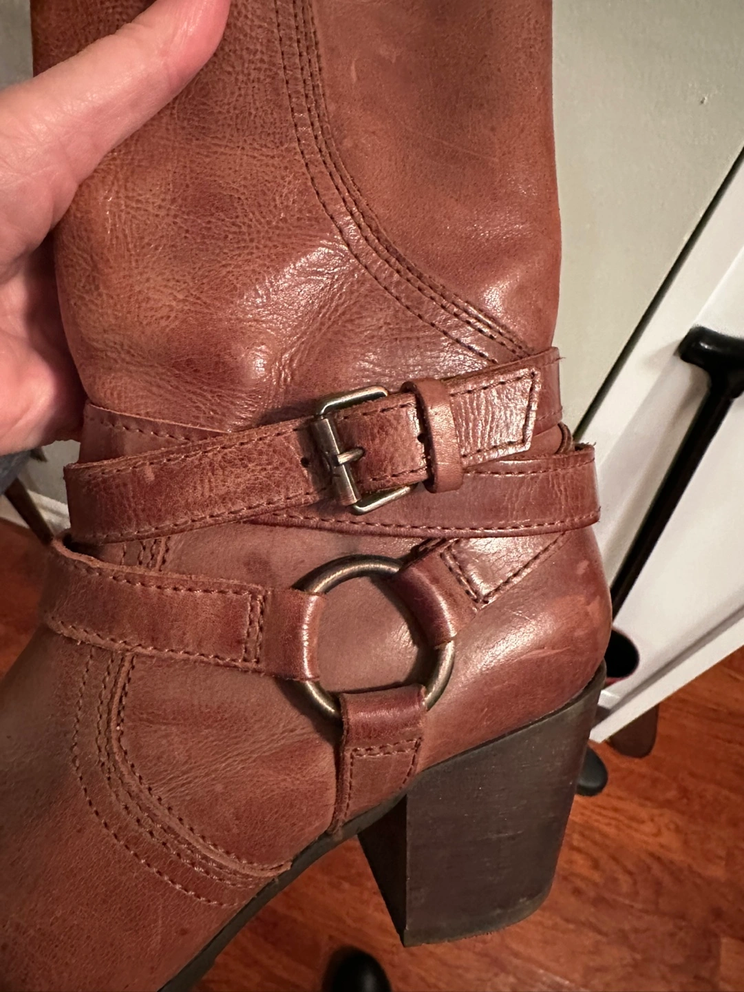 Women's brown leather tall boots. Features a zipper closure, buckle straps. Beautiful soft leather and cowboy styling. Smoke- and pet-free home. Cash only please #Thriftypicks