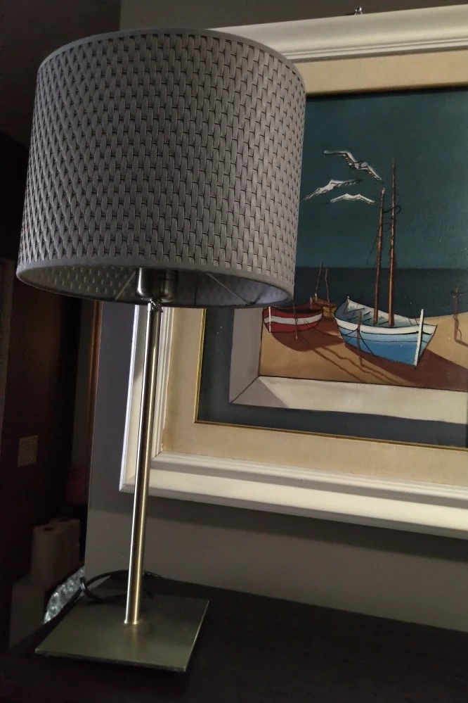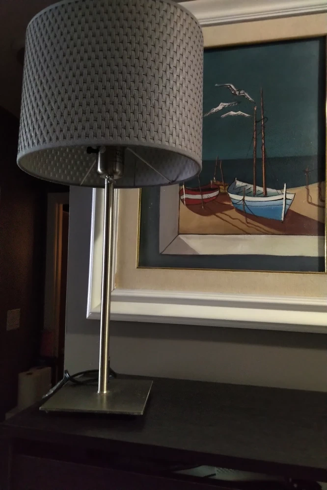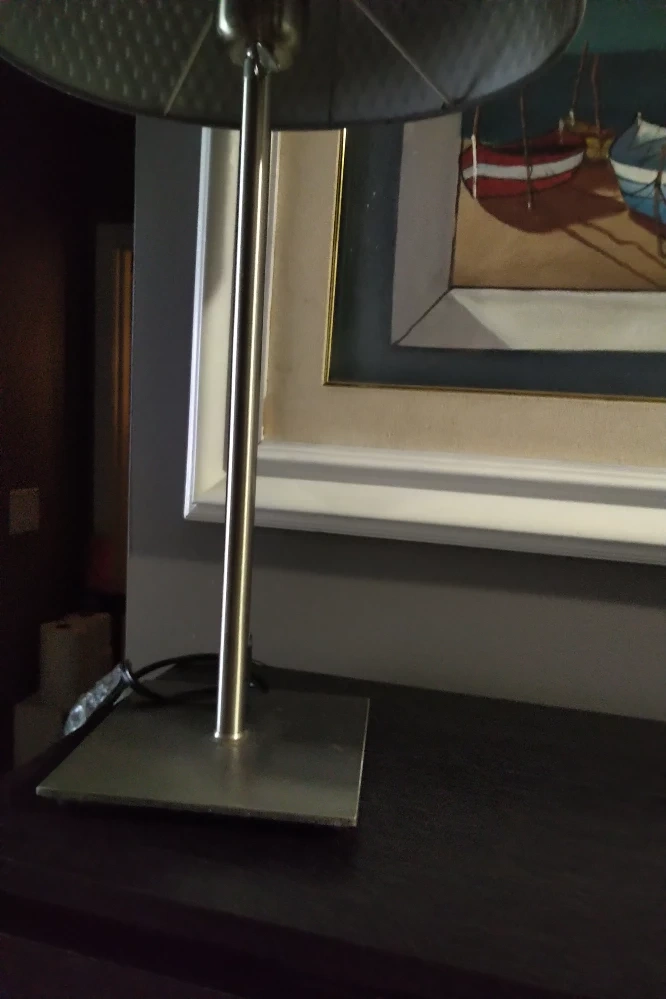 1000+Stylish table lamp from ikea.Features a brushed nickel metal base and a grey woven fabric shade. Simple design, perfect for a bedside table or living room.🛋️ pick up Weston rd@401 may accommodate at various locations within distance only.
