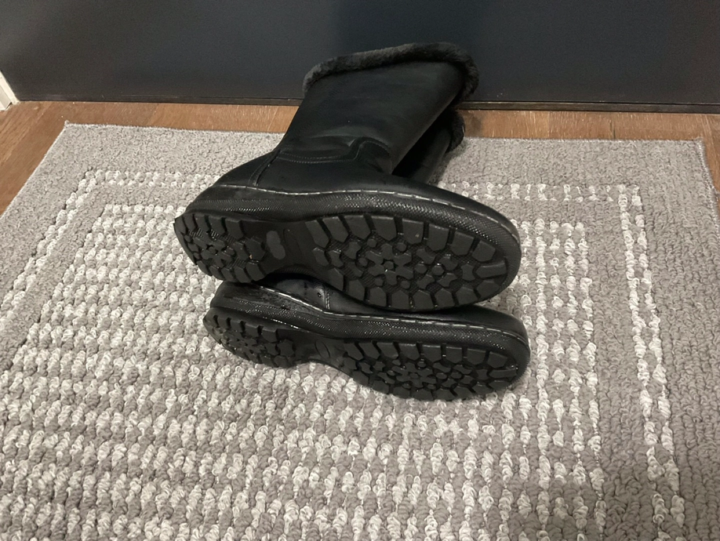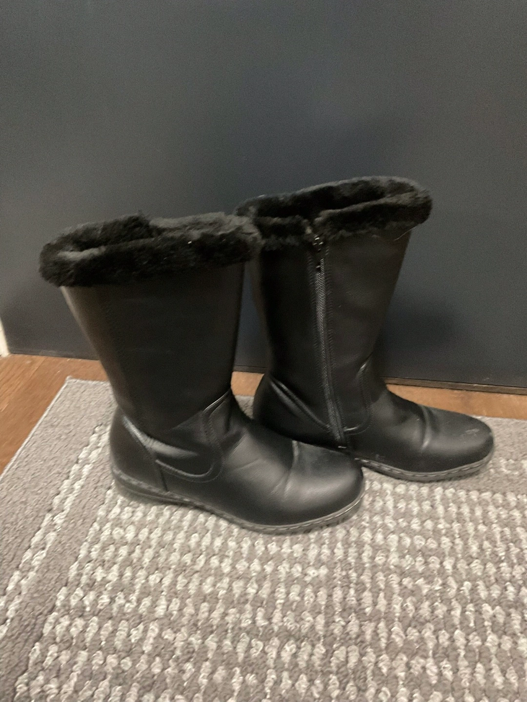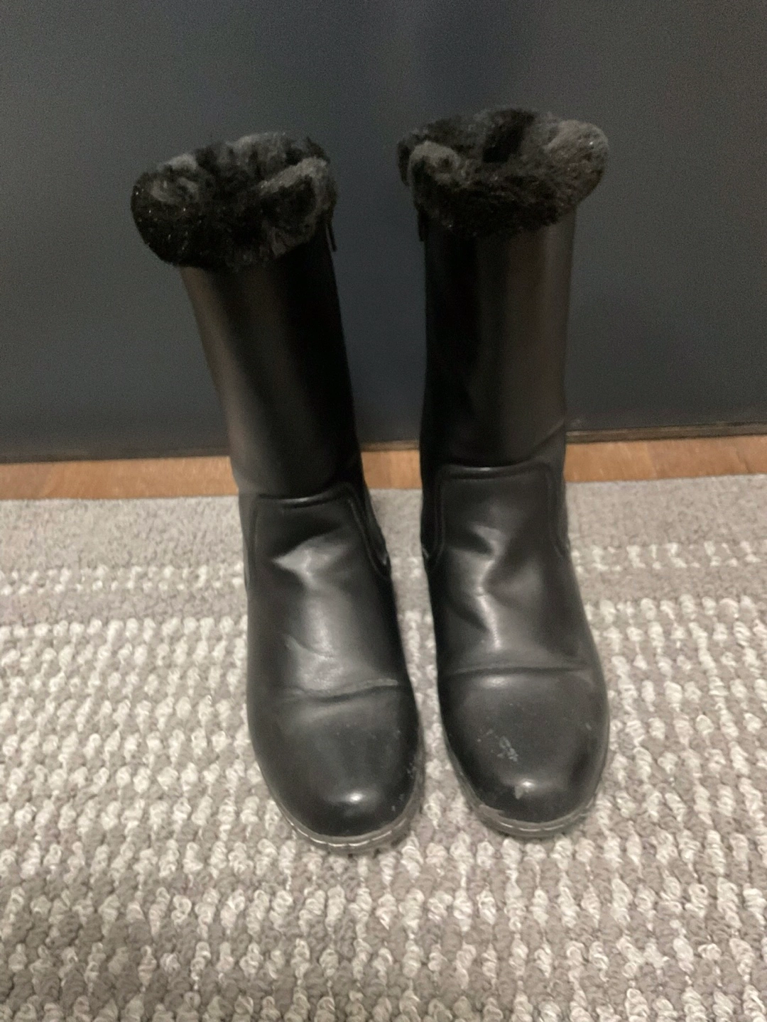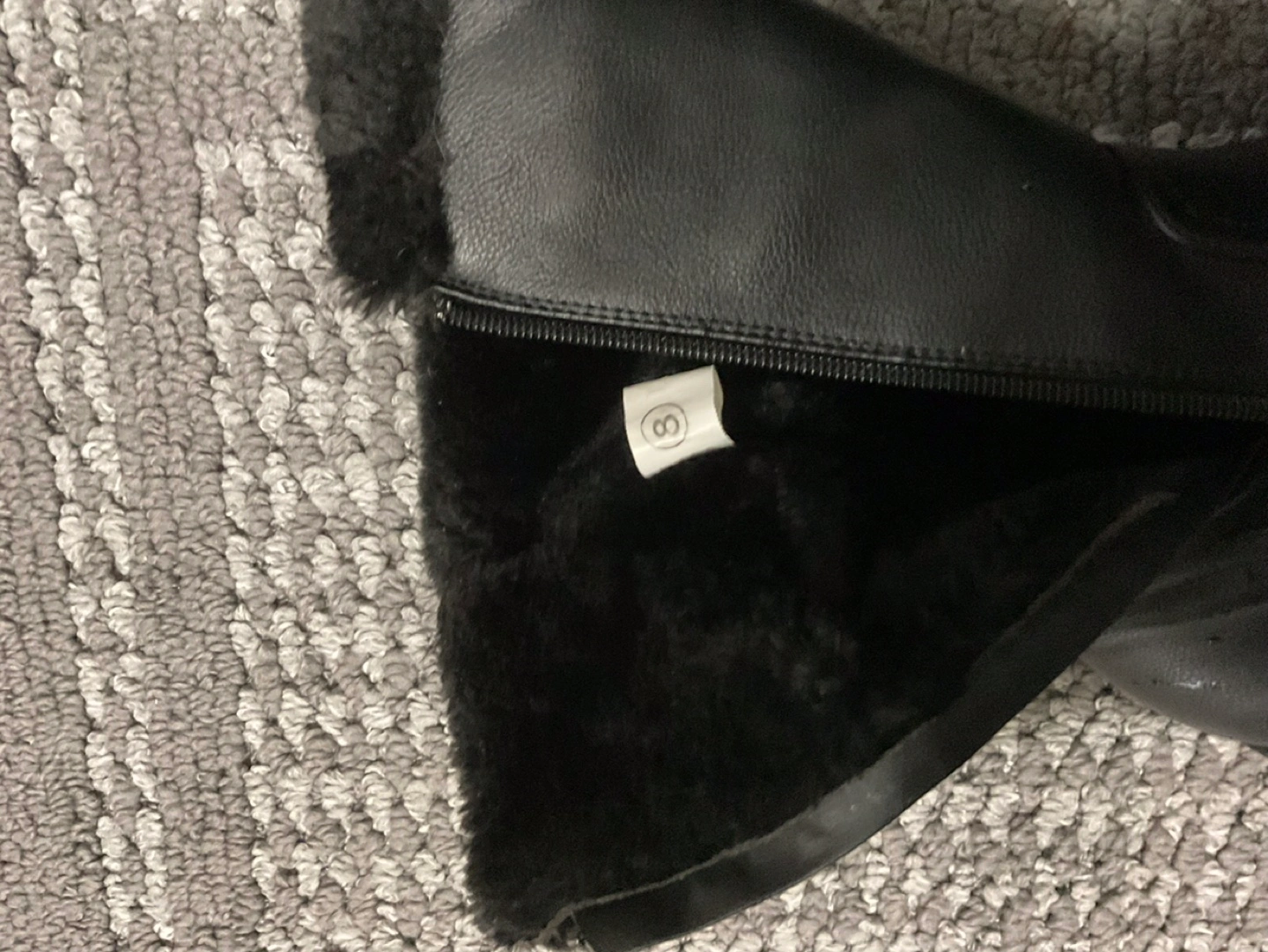 69Black faux leather winter boots. Size 8. Side zipper closure. Faux fur lining. Bought wrong size…. Worn once!
