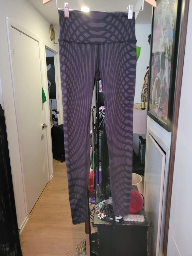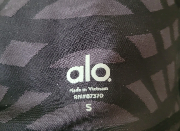 Alo Yoga high-waisted leggings. Size small. Black and grey patterned design. Excellent for yoga or workouts.