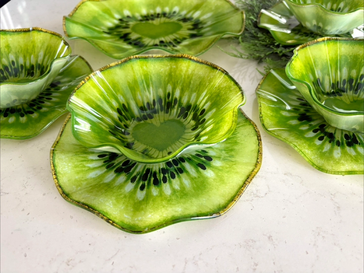 Kiwi π₯ Slice Theme Glass Bowls & Plates Set