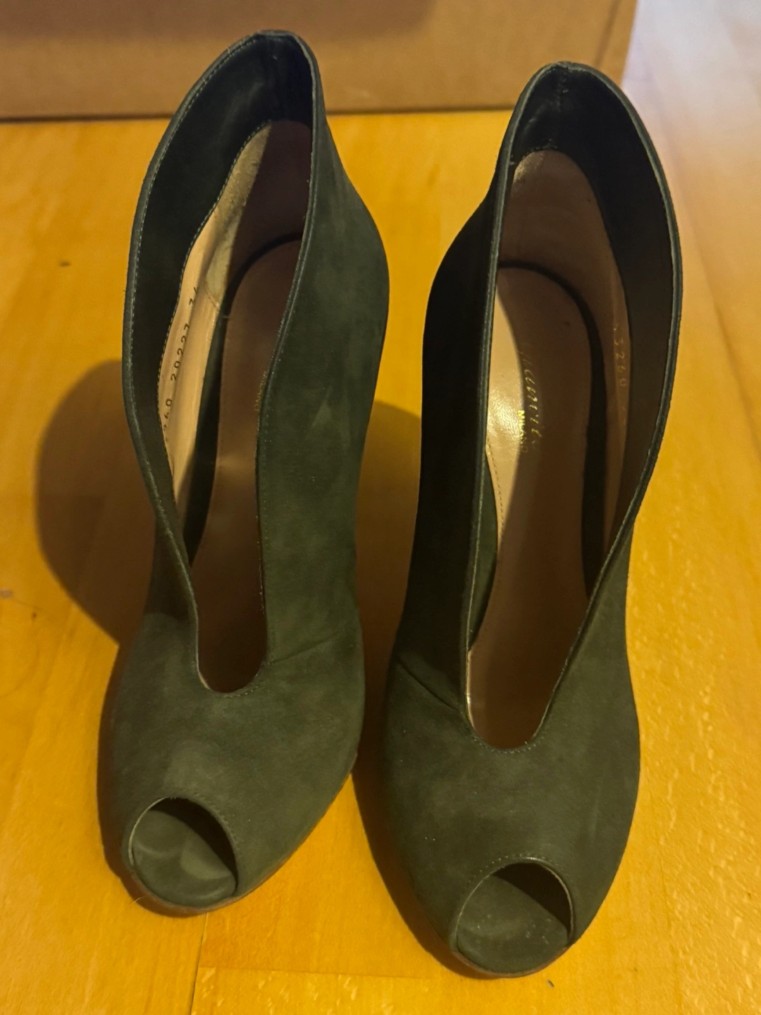 Buy & SellSuede Peep Toe HeelsSuede Peep Toe Heels$70Green suede peep toe heels with a high stiletto heel. Size 37.Size6BrandGianvito RossiWHERE TO MEETLiberty villageView MapSELLERverifiedKarenLiberty Village750 reviews0 chats·0 favorites·9 viewsSEND CHAT TO SELLERHi Karen! I’m interested in your listing.Hi Karen! I’m interested in your listing.Get the Karrot app to chatSign In to chat