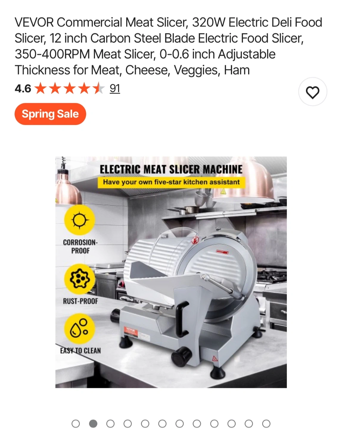 This VEVOR commercial meat slicer has a 320W motor and a 12-inch carbon steel blade. It offers adjustable thickness from 0-0.6 inches for slicing meat, cheese, and veggies. It's corrosion-proof, rust-proof, and easy to clean!