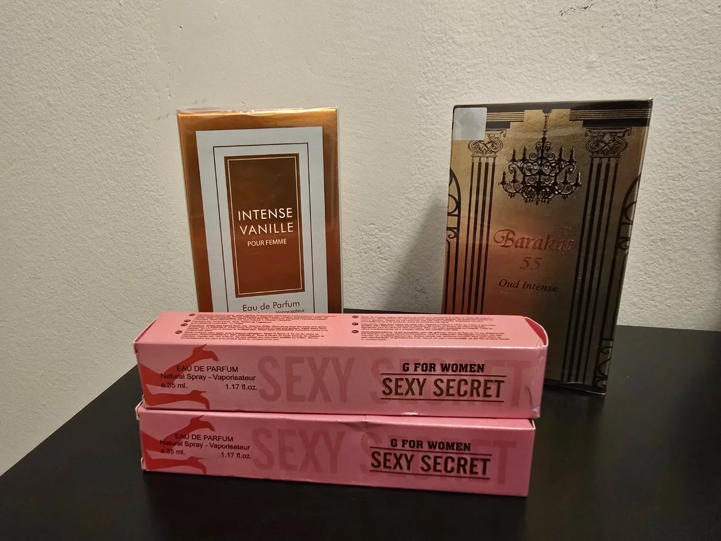 1. Sexy Secret G for Women (2pc) Eau de Parfum natural spray. Each bottle contains 35 ml (1.17 fl. oz.) of fragrance. Ingredients are listed on the packaging.
