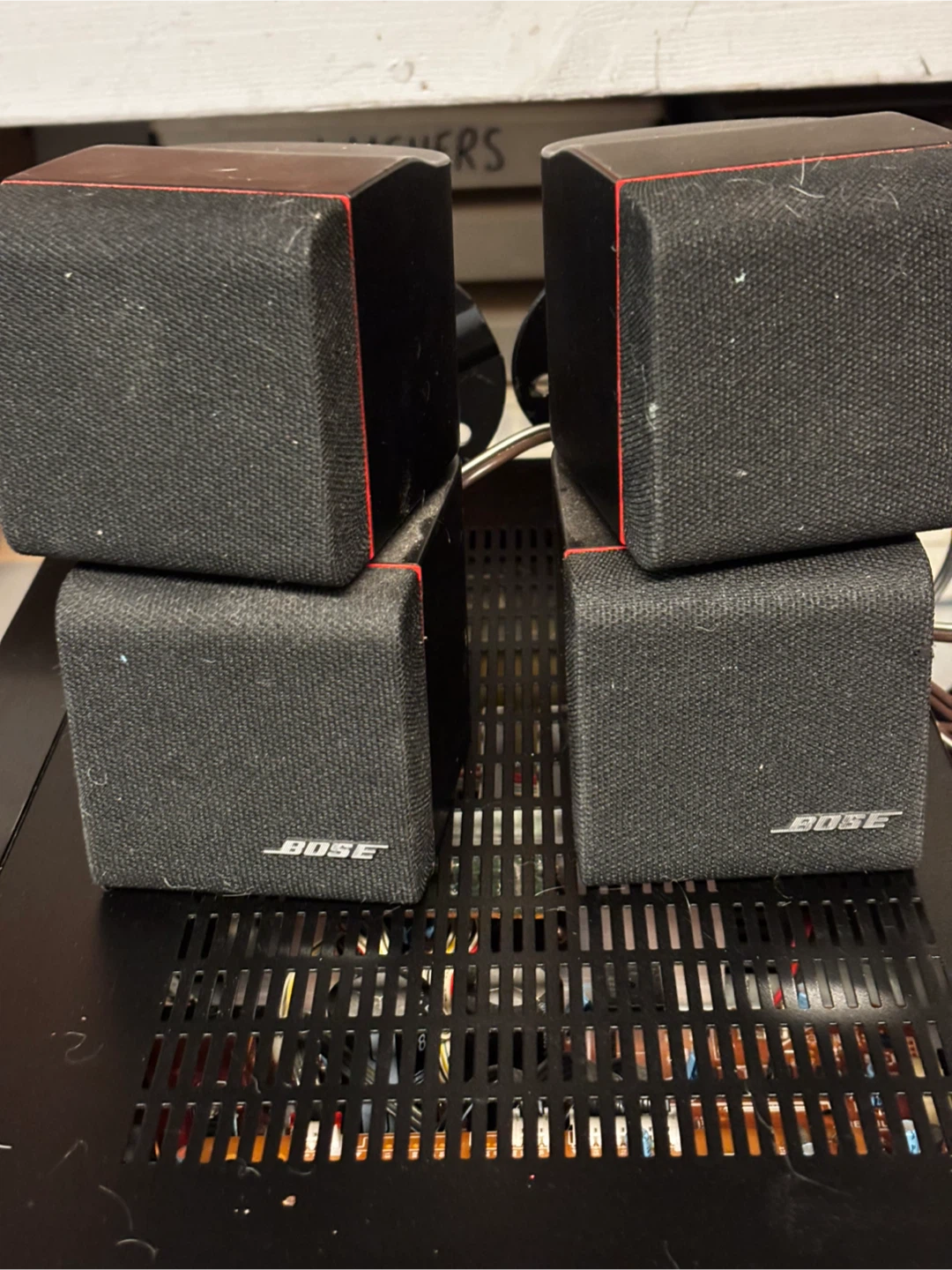 Selling a set of Bose speakers in black! They're in good condition and ready to enhance your listening experience at home