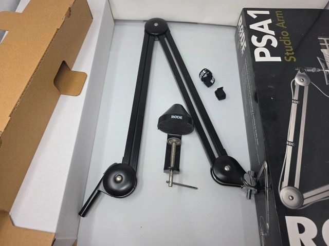 Pre-owned RODE PSA1 microphone boom arm. Comes with original box, base mount, and 3 velcro straps.