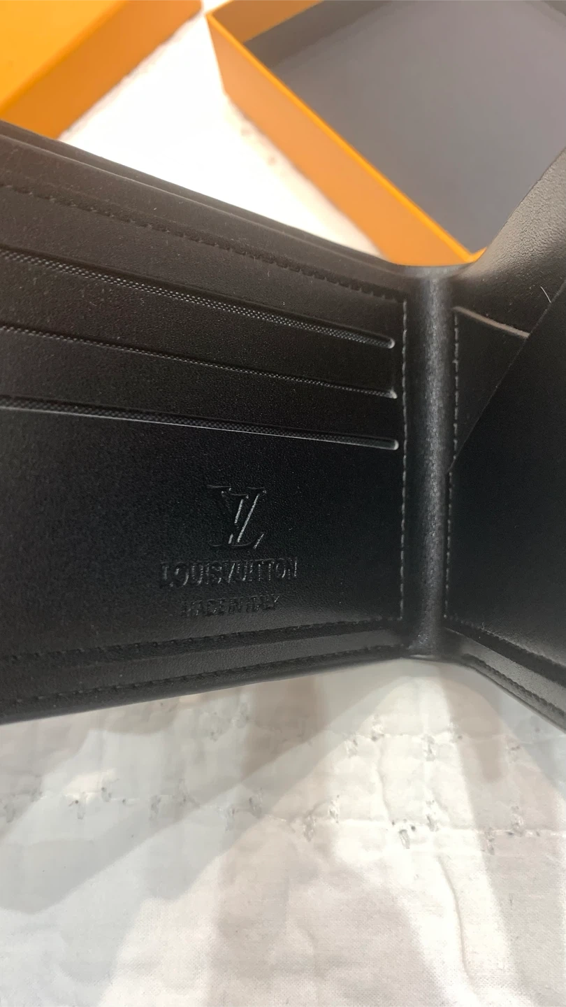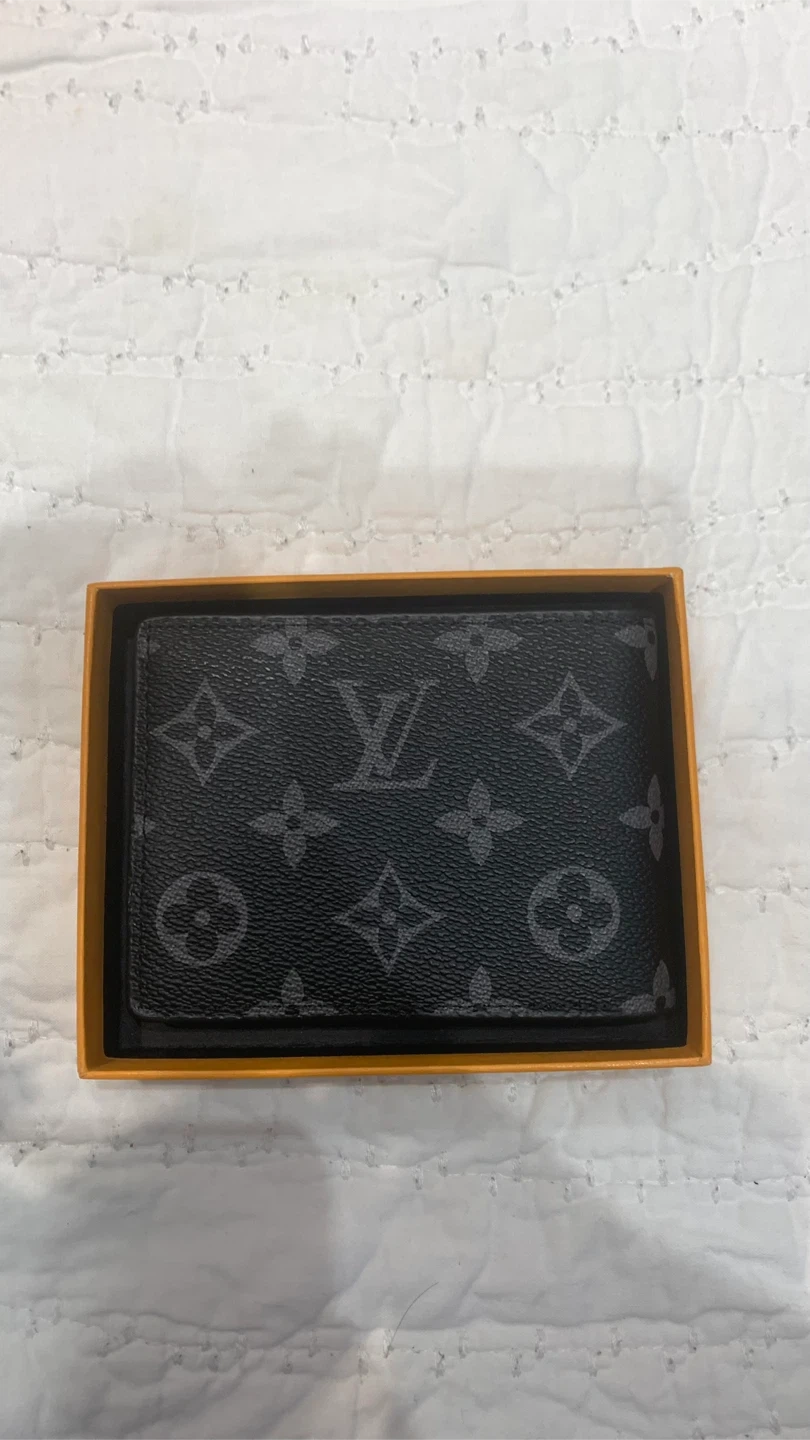 This Louis Vuitton bifold wallet features the iconic monogram pattern. includes its box. This wallet's compact design makes it easy to carry your essentials.