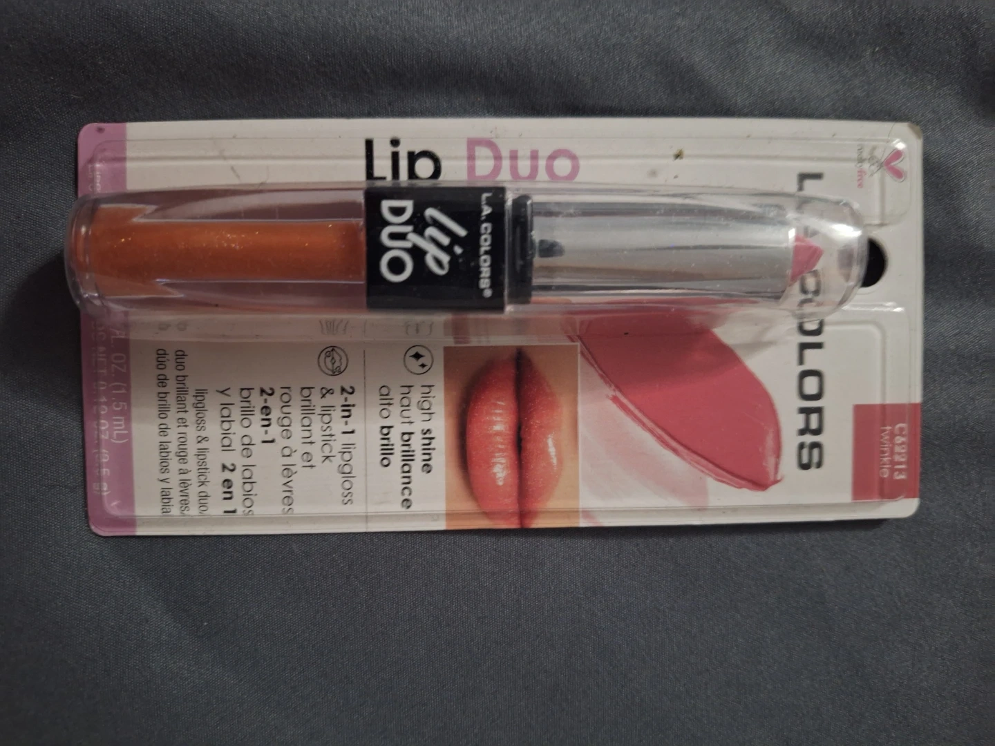 This L.A. Colors Lip Duo offers a 2-in-1 design featuring lipgloss and lipstick in one convenient package. It provides high shine for a vibrant look. Perfect for quick touch-ups on the go!