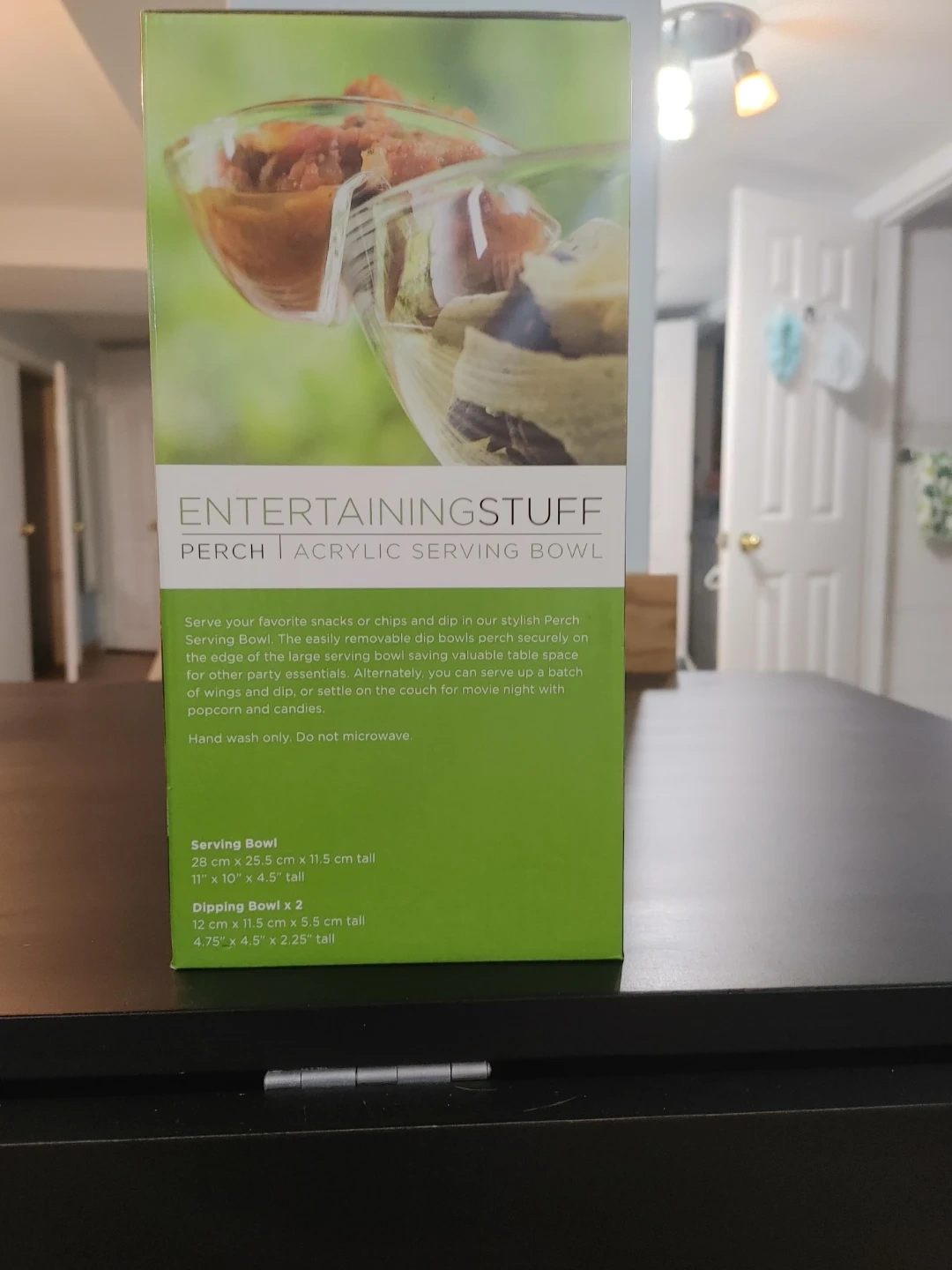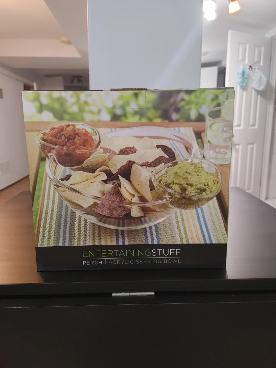 Serve your favorite snacks and dips with this stylish Perch Serving Bowl. It's made of acrylic and comes with one large serving bowl and two smaller dip bowls. The large serving bowl measures 28 cm x 25.5 cm x 11.5 cm tall. The dip bowls are 14 cm x 14 cm x 5.5 cm tall. Im located at keel and eglinton. Pick up only please. Make an offer. π