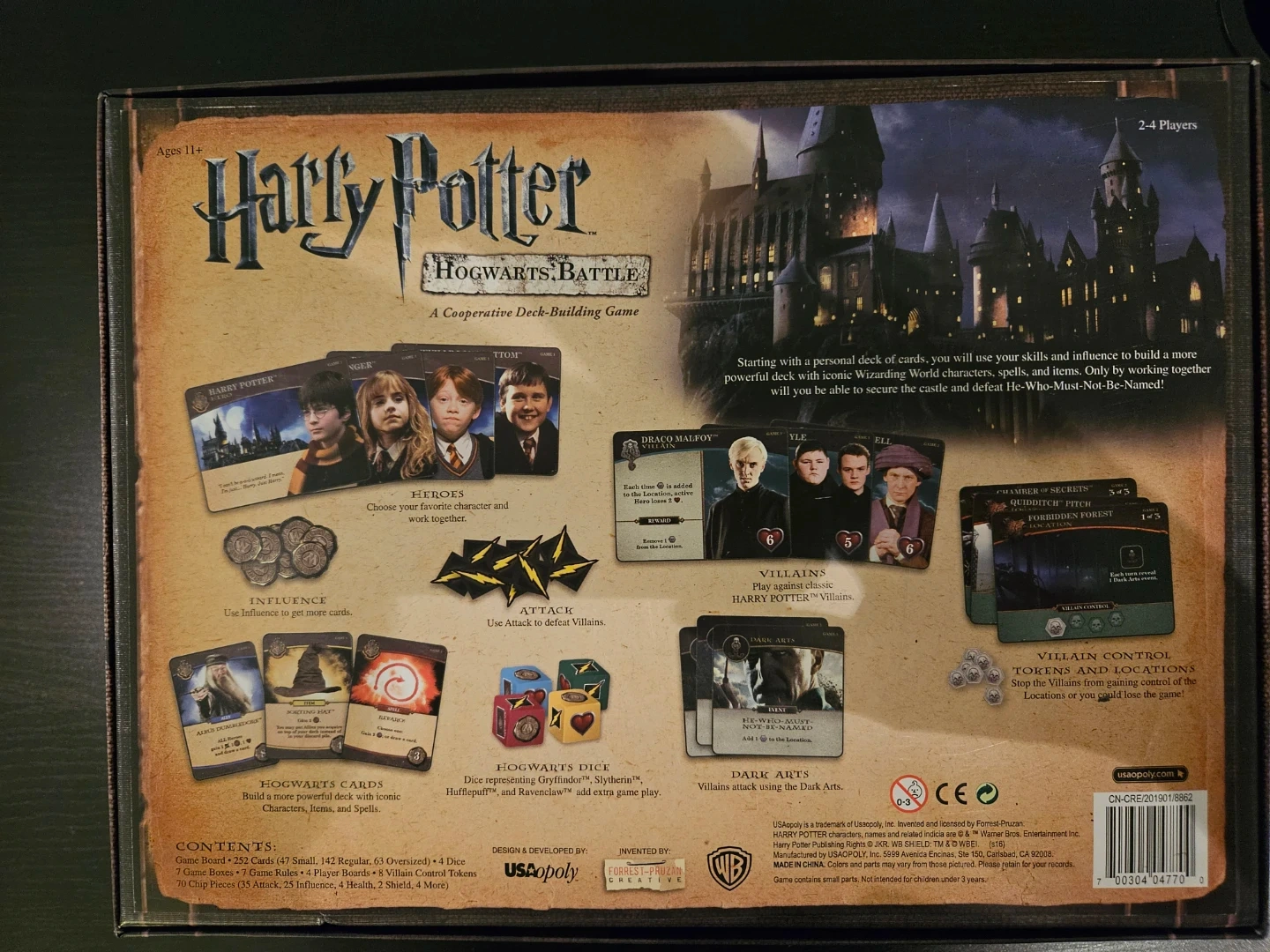 Harry Potter Hogwarts Battle cooperative deck-building game. It's designed for 2-4 players.