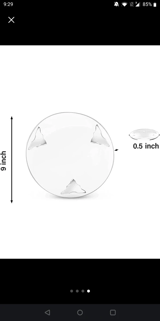 It's a stainless steel rolling pin with a clear acrylic stand. The stand is 9 inches in diameter and 0.5 inches thick. Great for baking pastries and dough!