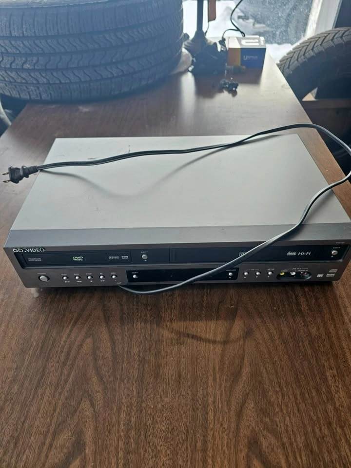Plays DVDs and VHS tapes. 4-Head Hi-Fi VCR with Progressive Scan DVD. Front AV input, rear RCA and Component video outputs. Clean condition with minor cosmetic wear from normal use. No remote included. Sold as-is.