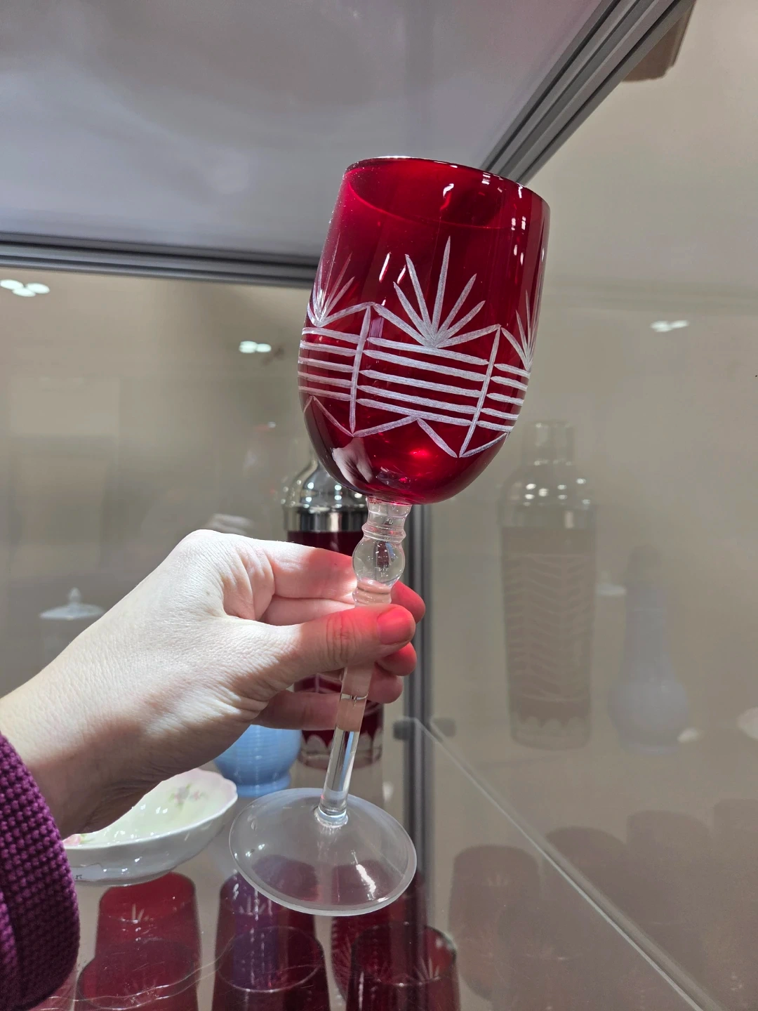 Set of 12 Red Etched Wine Glasses plus shaker