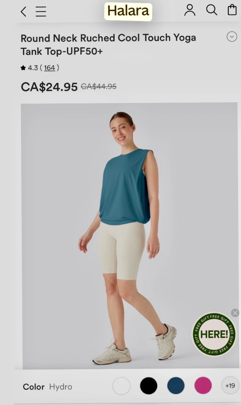 Two New Halara Round Neck Ruched Cool Touch Yoga Tank Tops