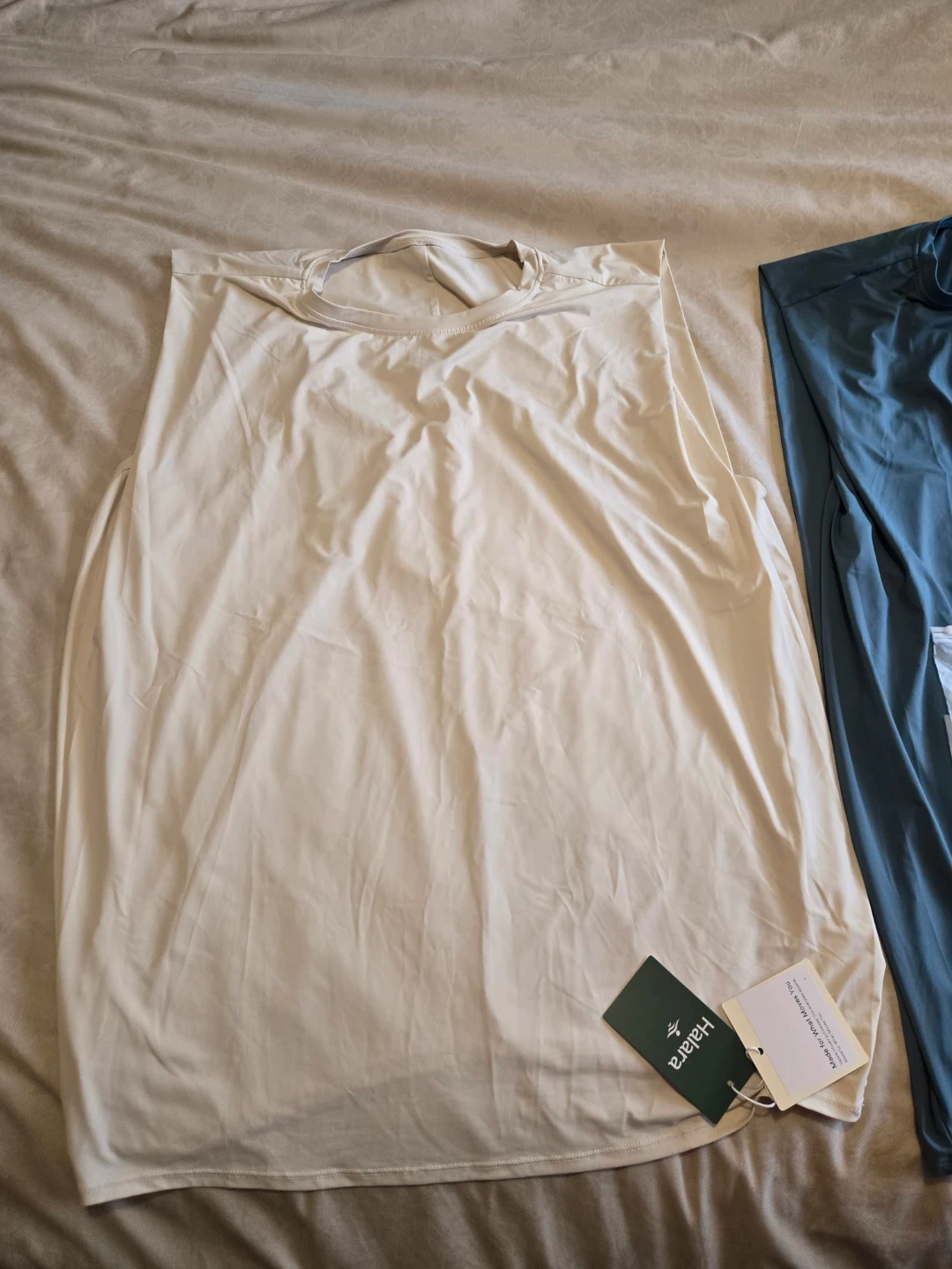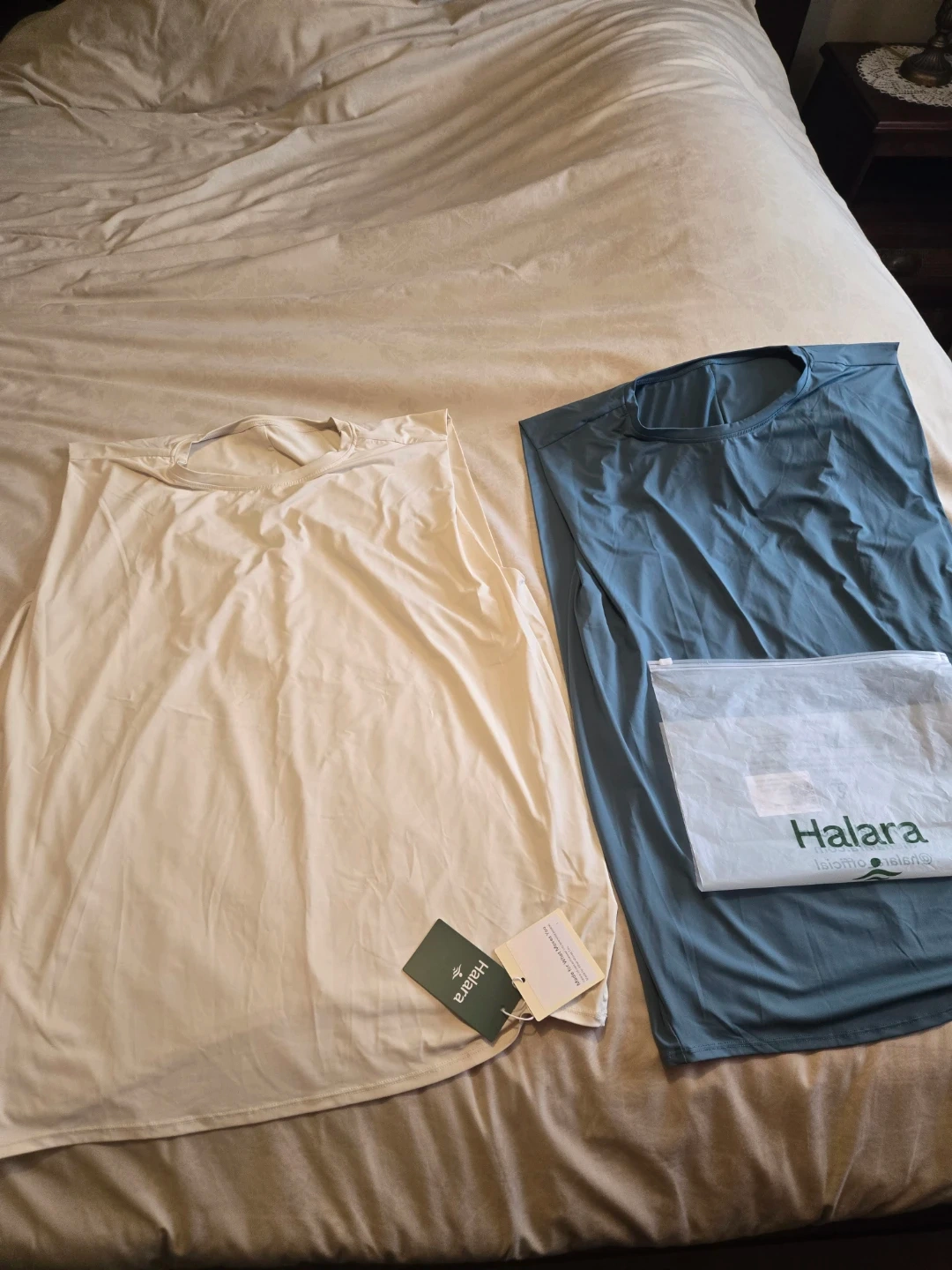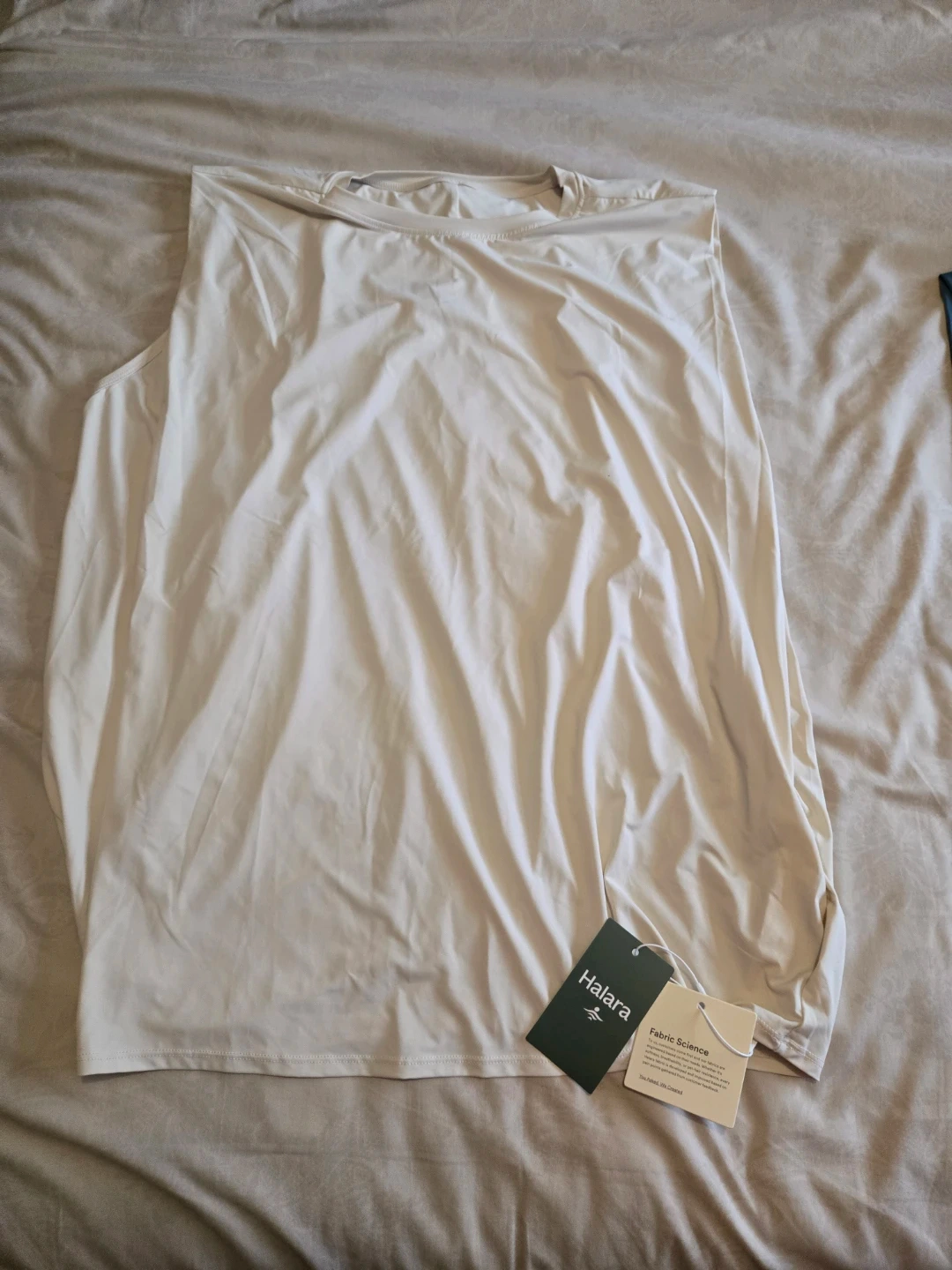 These Two Halara yoga tank tops are designed for comfort and performance. It features a round neck and a ruched detail. The fabric is cool touch with UPF50+ protection.Cream one has tags still on.