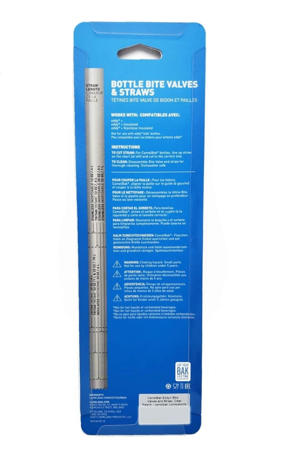 Replacement bite valves and straws for your CamelBak bottles. Includes two bite valves and two straws. Works with Eddy and Insulated Eddy bottles. Not for use with kids' bottles or hot liquids.