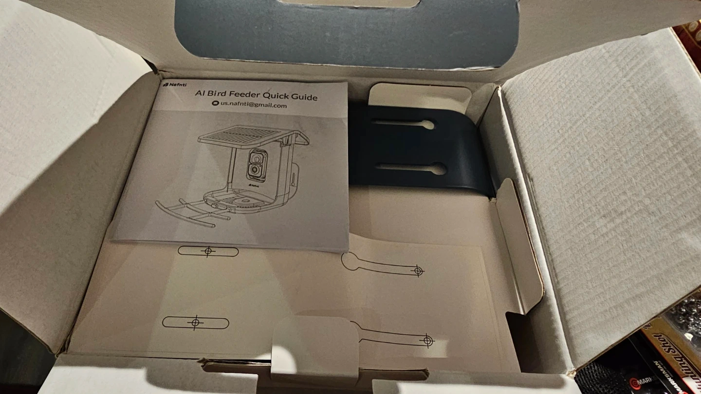 Also includes an AI Bird Feeder Quick Guide and the box.