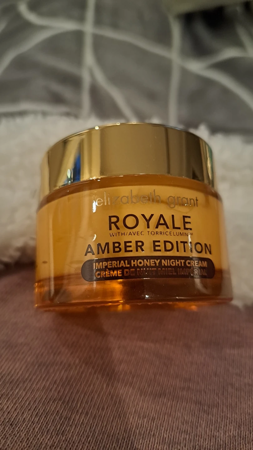 This is Elizabeth Grant Royale Amber Edition Imperial Honey Night Cream. It's a luxurious night cream designed to nourish your skin. This cream helps to replenish and hydrate overnight.