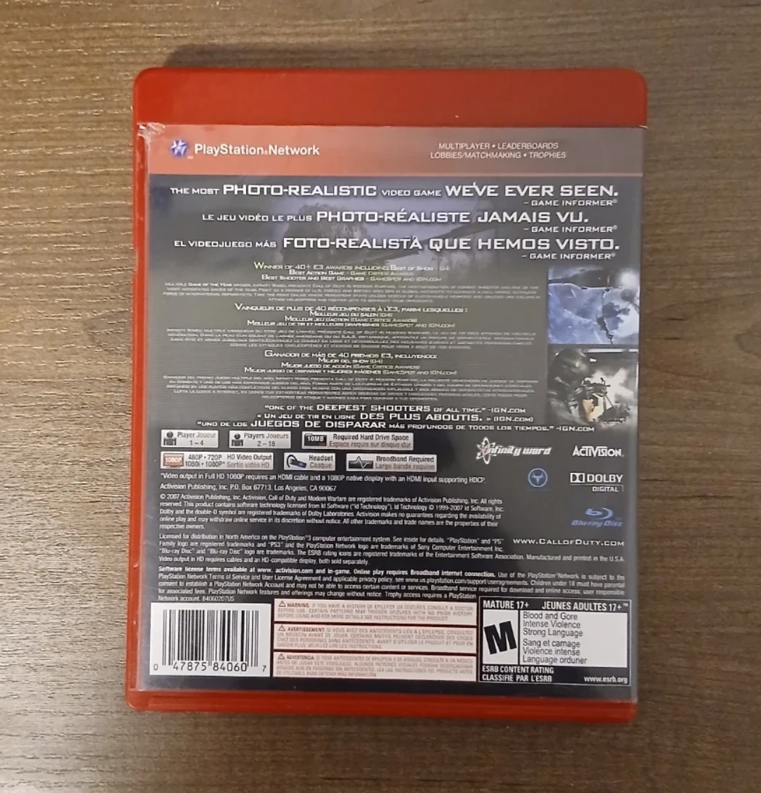 This is the 'Greatest Hits' edition of Call of Duty 4: Modern Warfare for the PlayStation 3. It's a Blu-ray disc game from Infinity Ward and Activision. Requires 10MB of free space.