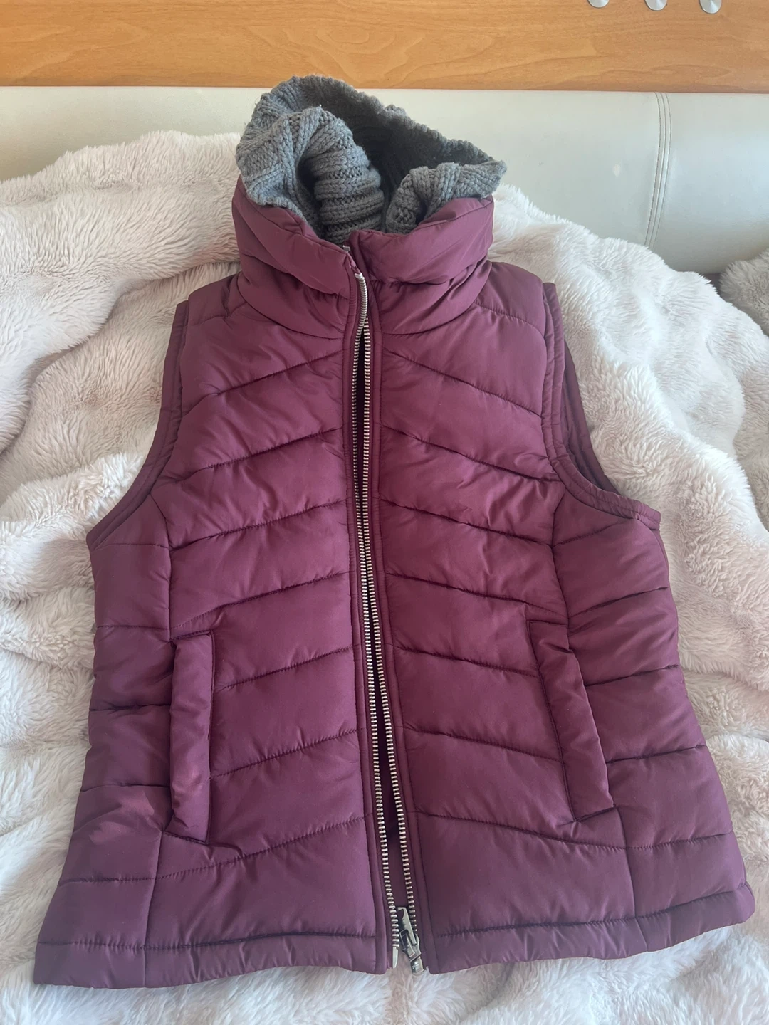 Selling a Topshop padded vest in excellent condition! It's a size US 10 and features a cozy, knitted collar. Perfect for adding a layer of warmth on chilly days
