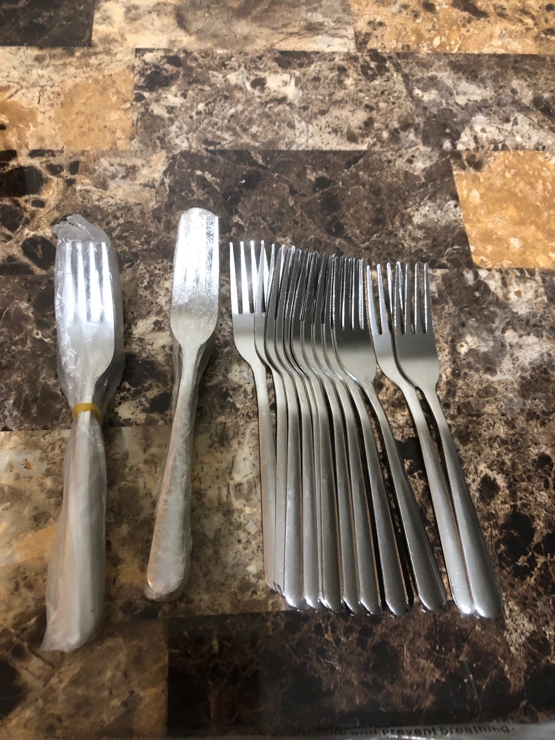 Selling a set of 36 stainless steel forks, still in their original packaging! Perfect for everyday use or special occasions. They're durable and easy to clean, a great addition to any kitchen!