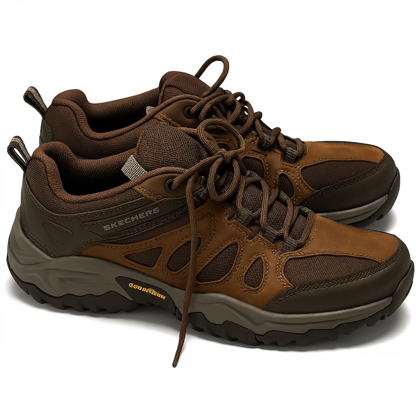 These Skechers hiking shoes are built for comfort and durability. They feature a brown leather and mesh upper. The rubber outsole provides excellent traction.