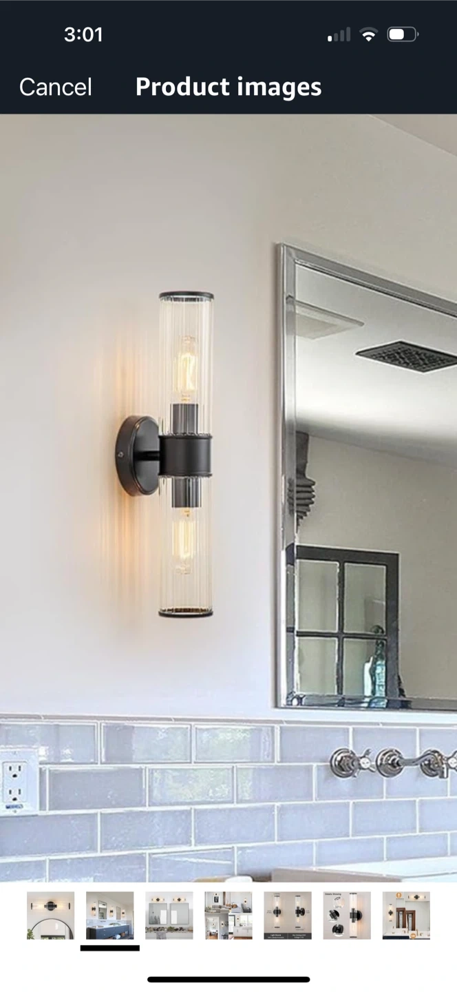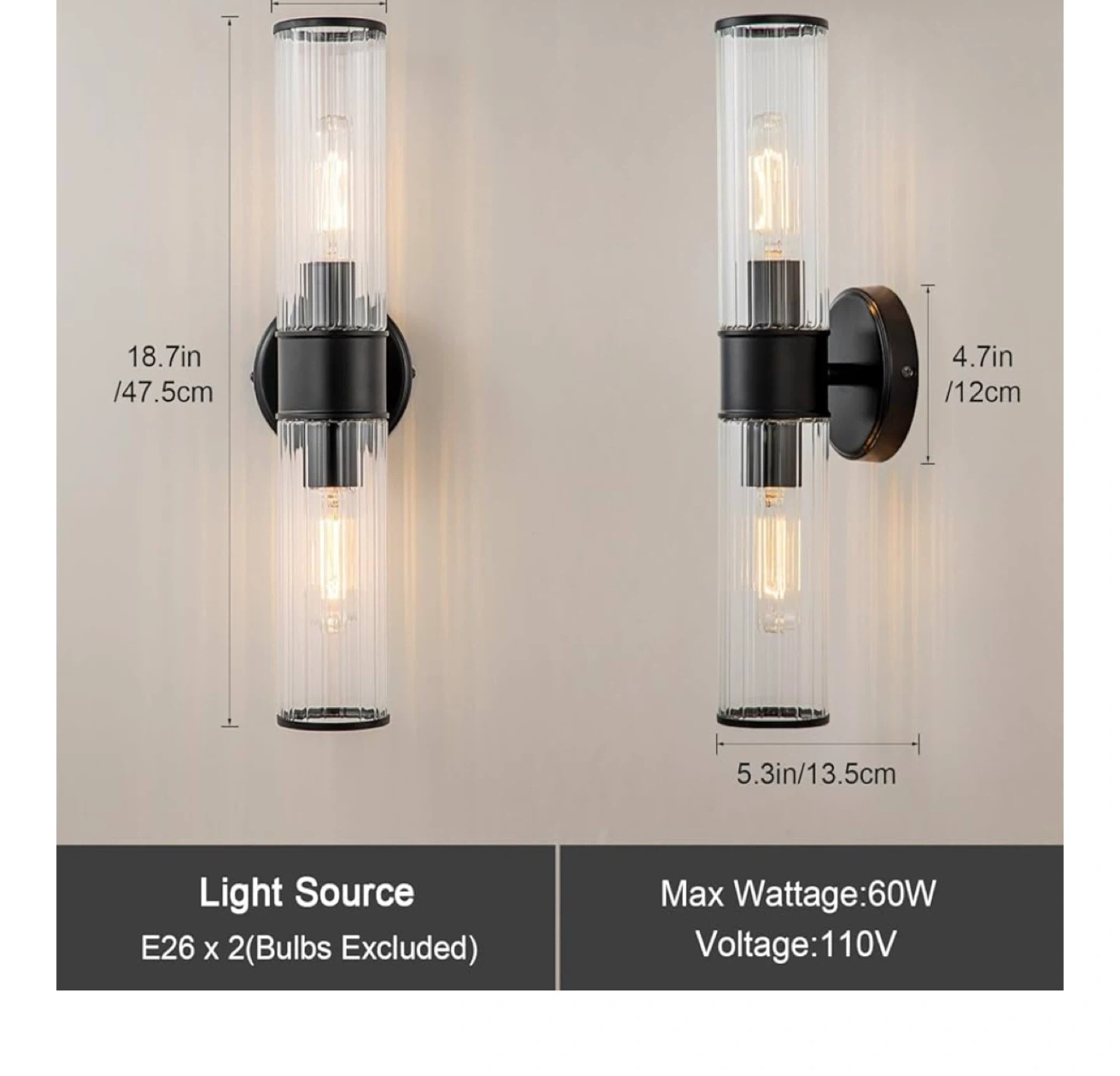 Only 1 not a pair just holds 2 bulbs This is a two-light black wall sconce featuring clear ribbed glass shades. It uses E26 bulbs, max 60W each, and operates at 110V. The fixture measures 47.5cm in height and 13.5cm in width.