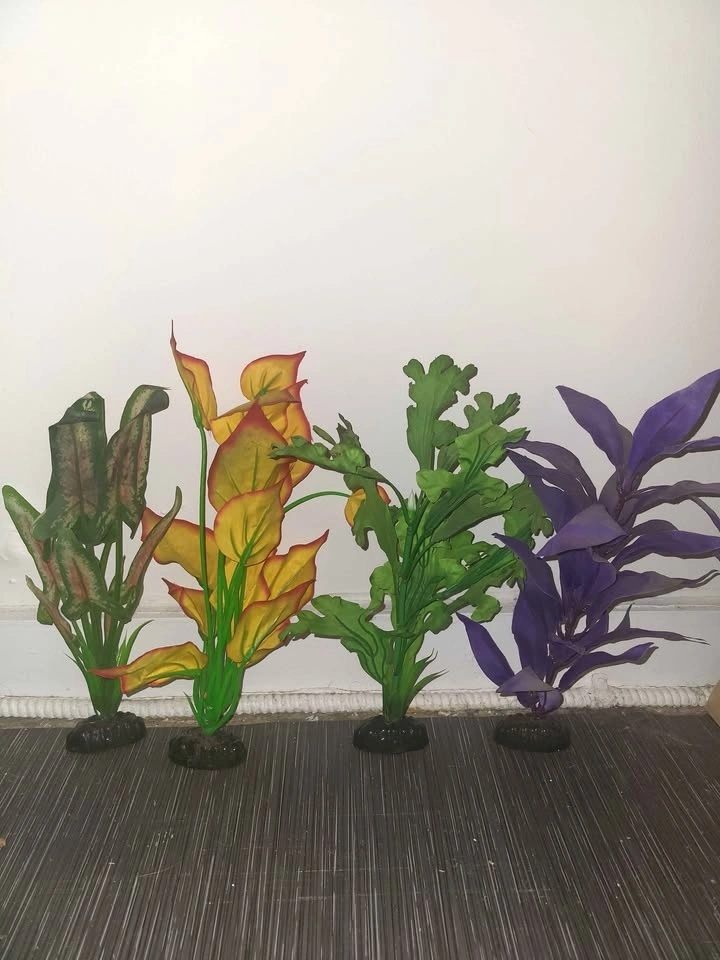 Includes a 20-gallon fish tank with lid and light, a stand, gravel, four fake plants, fish net, large driftwood, rock, two decor pieces, heater, a new, never-used filter, and a water circulation pump. PICK UP AND CASH ONLY.