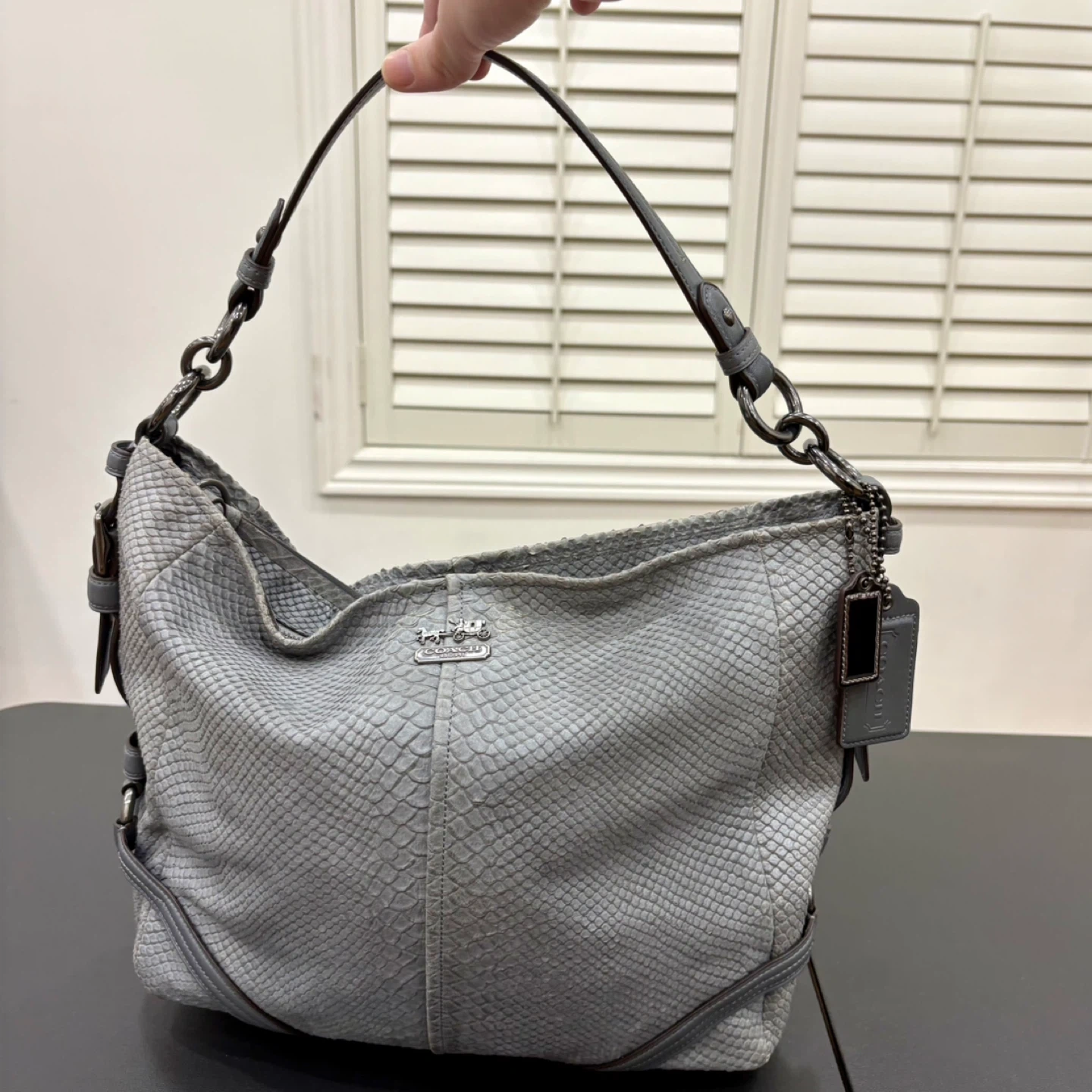 Coach Katarina Slouchy Hobo Grey Snakeskin/Python Embossed Bag