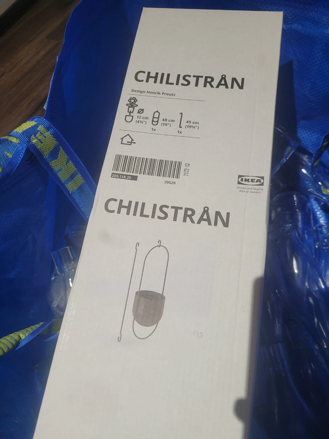 This IKEA CHILISTRÅN plant hanger is designed by Henrik Preutz. It has a pot diameter of 12 cm (4¾") and an overall height of 49 cm (19¼"). It's great for hanging plants indoors or outdoors.