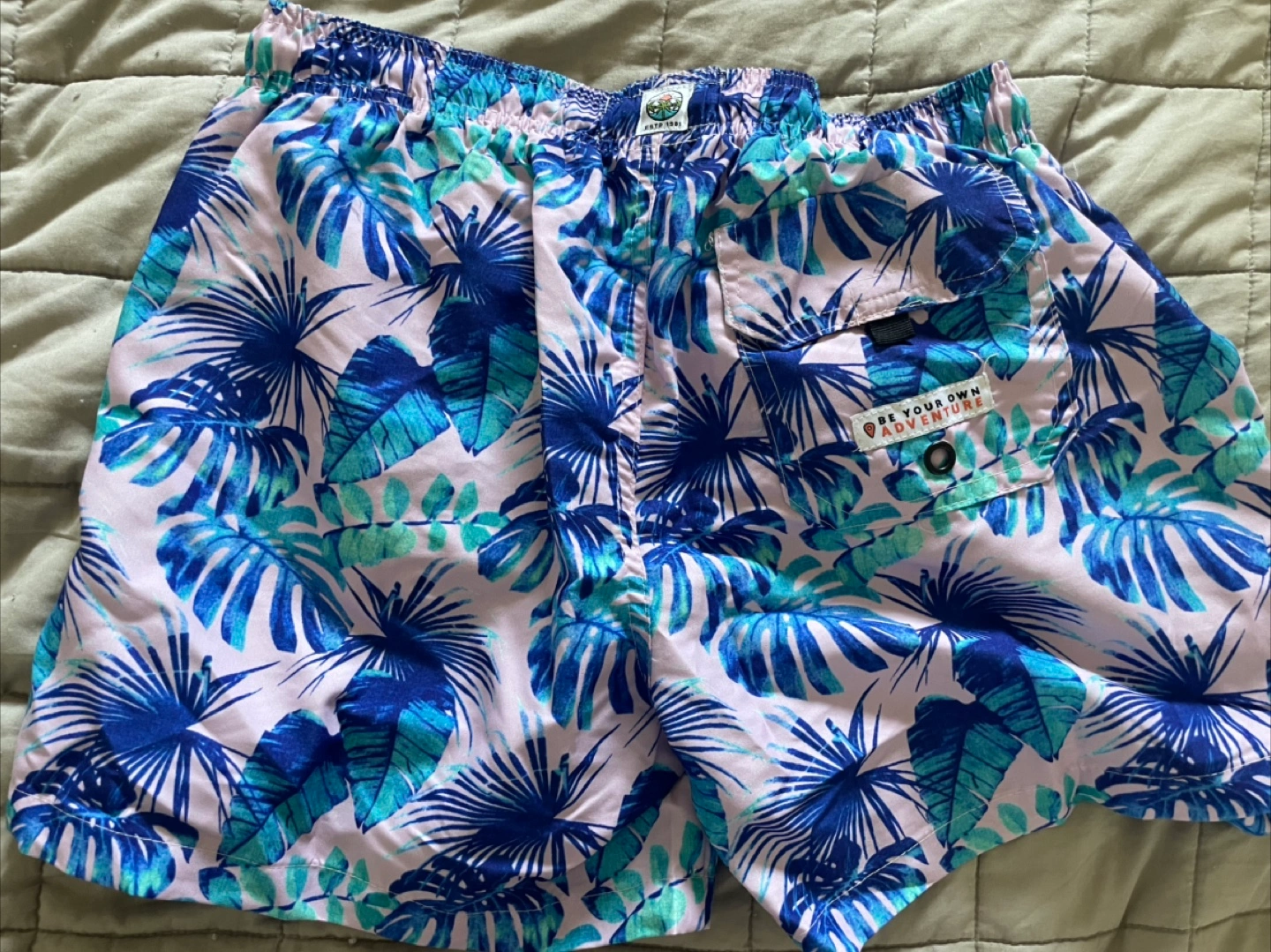 Featuring a beautiful floral print. These swim shorts have a drawstring and a pocket. You can imagine how comfortable these would be at the beach.