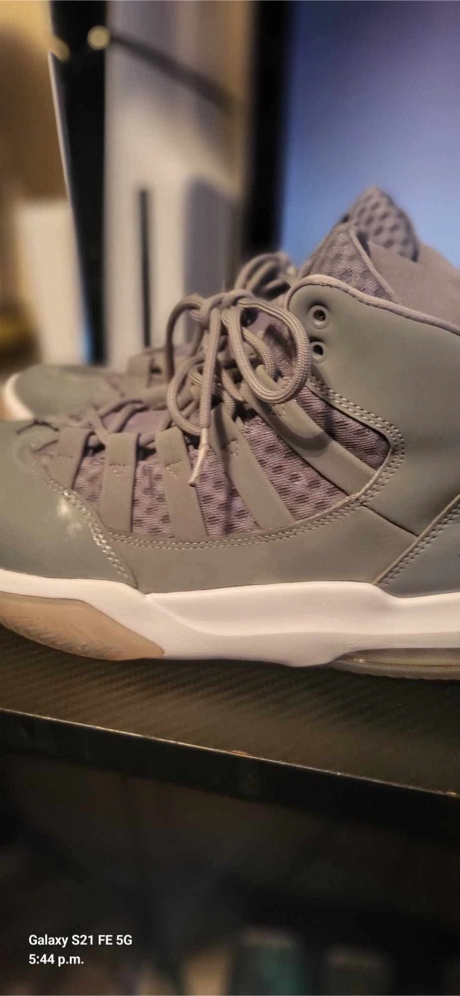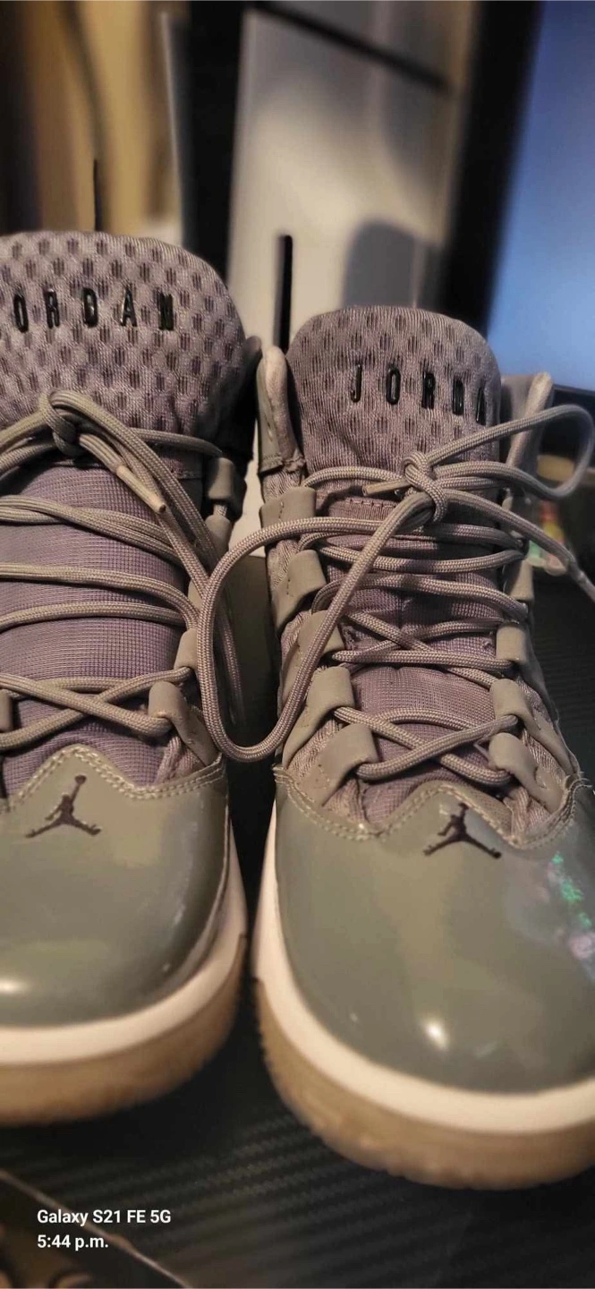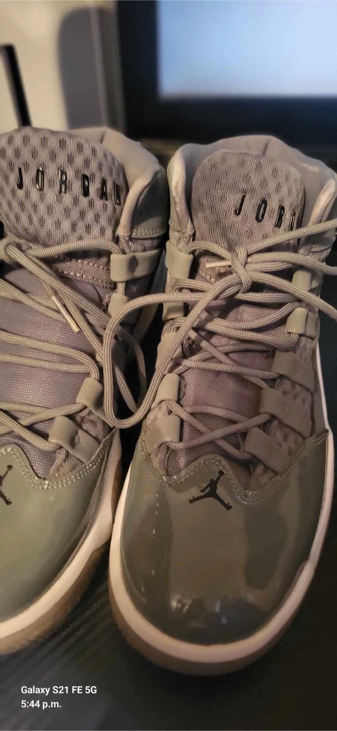 Grey Jordan mid-top sneakers. Size US 8. I restored these so they’re clean. Kinda creased a bit and bottom is a lil dirty.