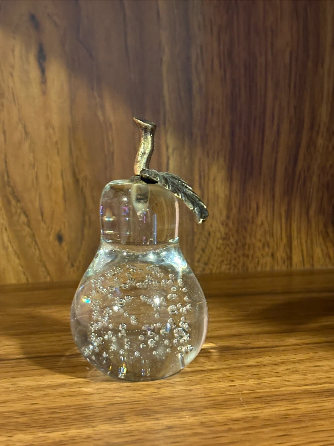 Glass Pear with Bubbles and Metal Stem