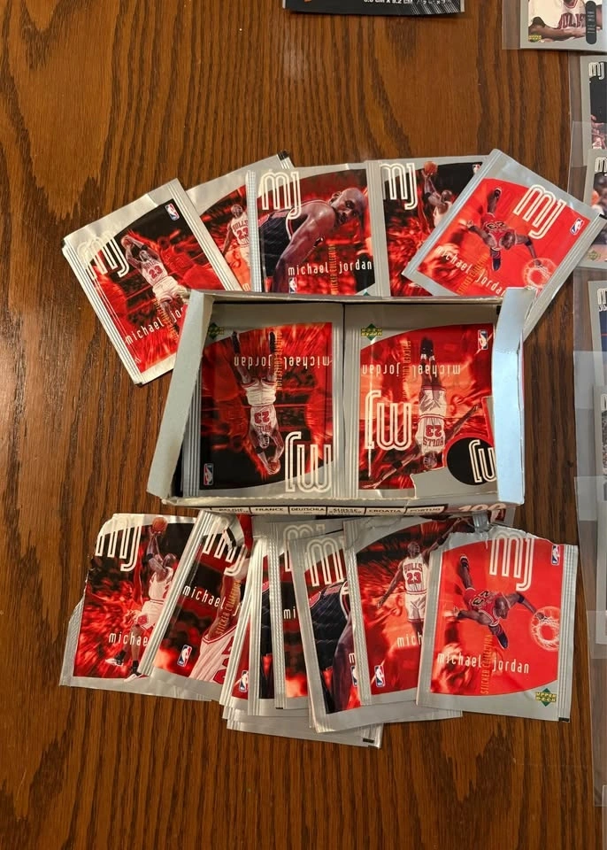Serious Michael Jordan collection for sale. Cards and stickers span 1990–2003, including Upper Deck, Fleer, Flair, and MJ insert series. Highlights include: 1990–91 Fleer #29, 1991 Fleer #206 Bulls Guard, 1997 Upper Deck #152, 1990 SP / SP1 Michael Jordan Baseball Card, 2003 Michael Jordan insert cards, 1998 Michael Jordan sticker box (mostly sealed), multiple sealed sticker packs + near-complete sticker runs, and several cards stored in hard cases. Collection is mostly raw, ungraded, and in good condition. This is a single curated lot, not picked-through commons. Asking $995 OBO.
