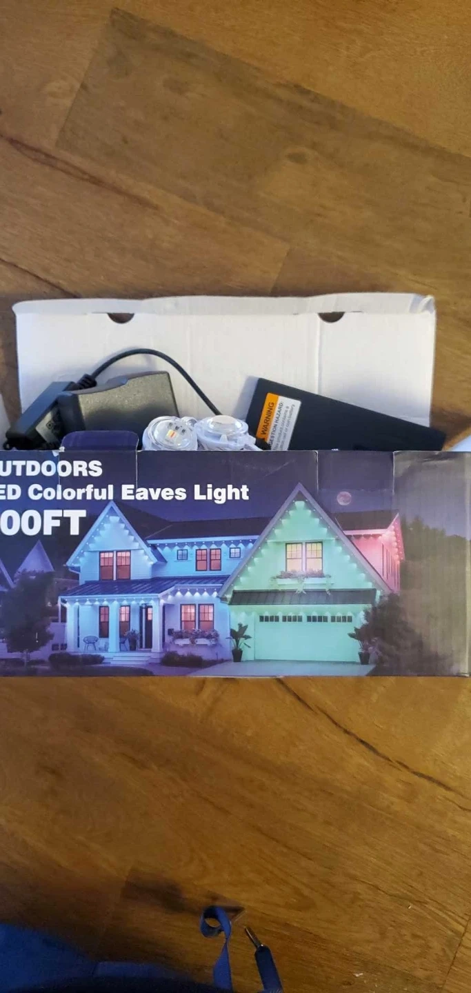 This set of outdoor LED colorful eaves lights is 200 ft long and waterproof with an IP67 rating. It comes with a remote for easy colour and function selection. Perfect for decorating your house exterior with vibrant, customizable lights!